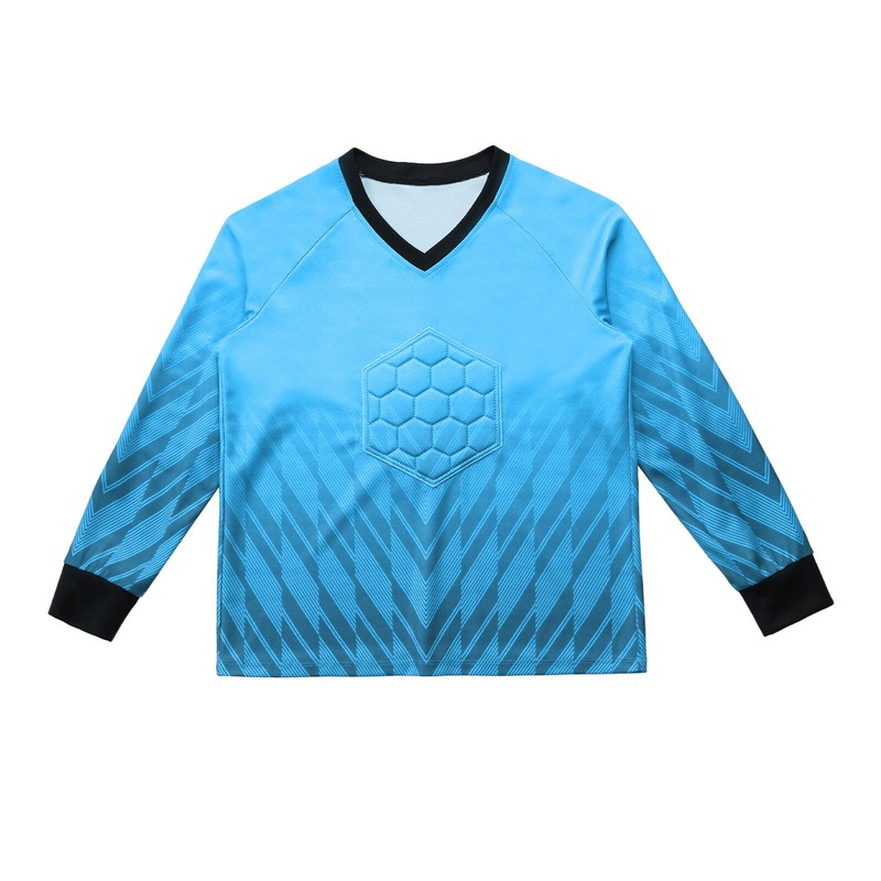 V-neck long sleeve sports shirt has geometric prints and bright colors, which are eye-catching and make the goalie stand out on the playground.