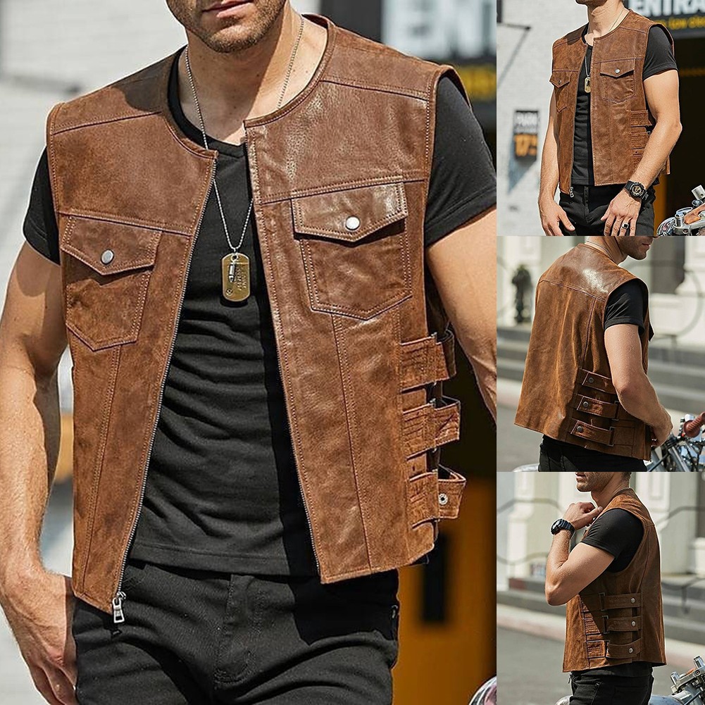 * Item Features:Men,Casual,Fashion,Biker Imitation leather Waistcoat,Motorcycle Various Club Pocket Vests,Sleeveless