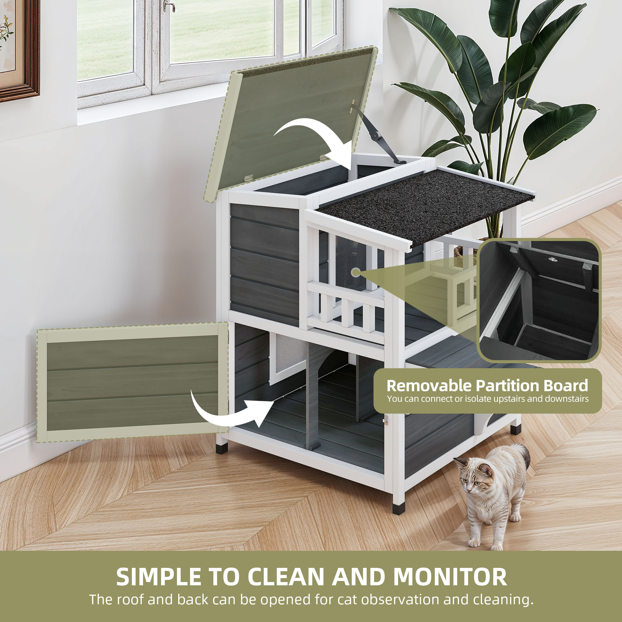 5. Effortless Maintenance: Equipped with large double-sided doors and a removable bottom panel, cleaning this cat house is straightforward and easy. Simply open the side doors to access the interior, keeping the environment tidy and hygienic for your pets.