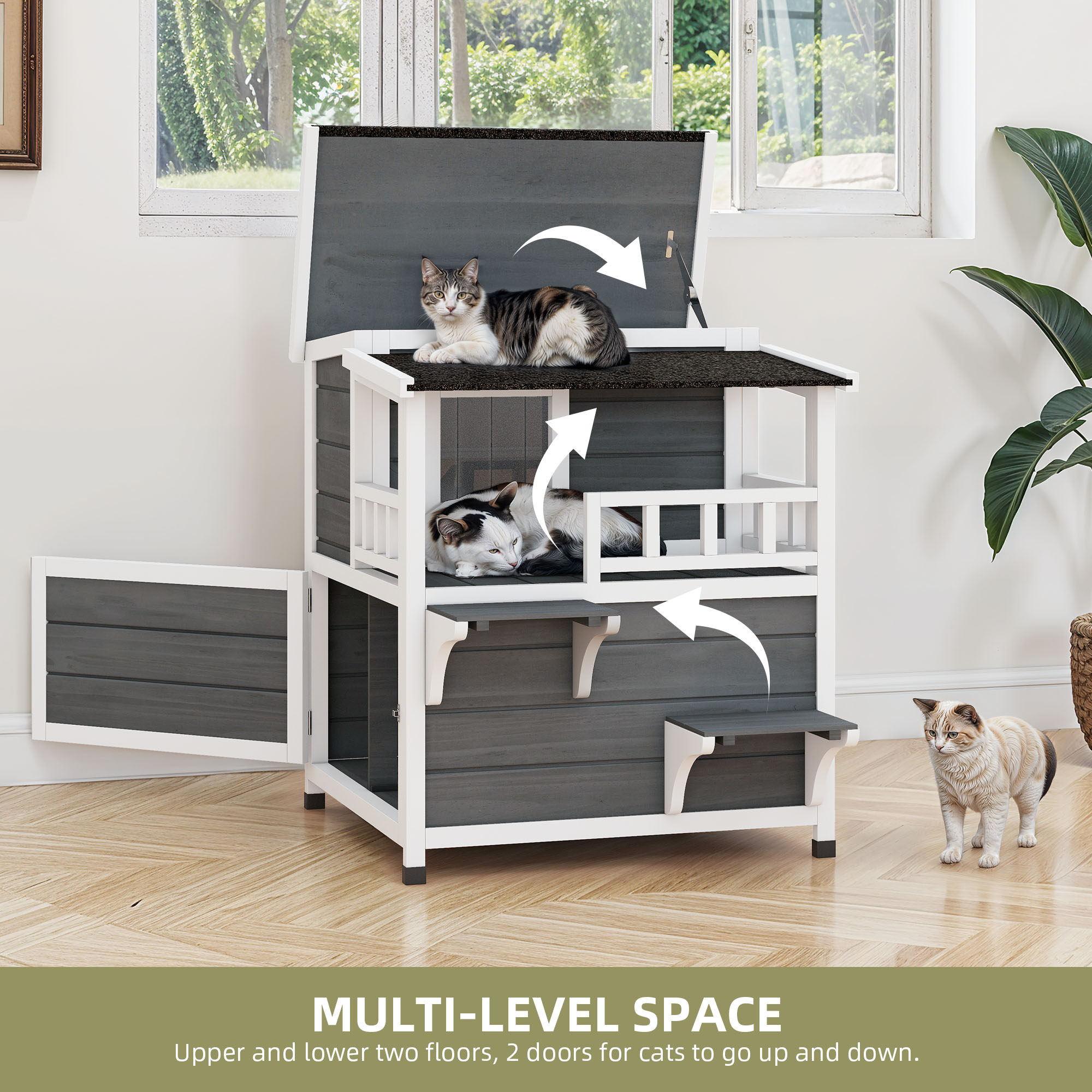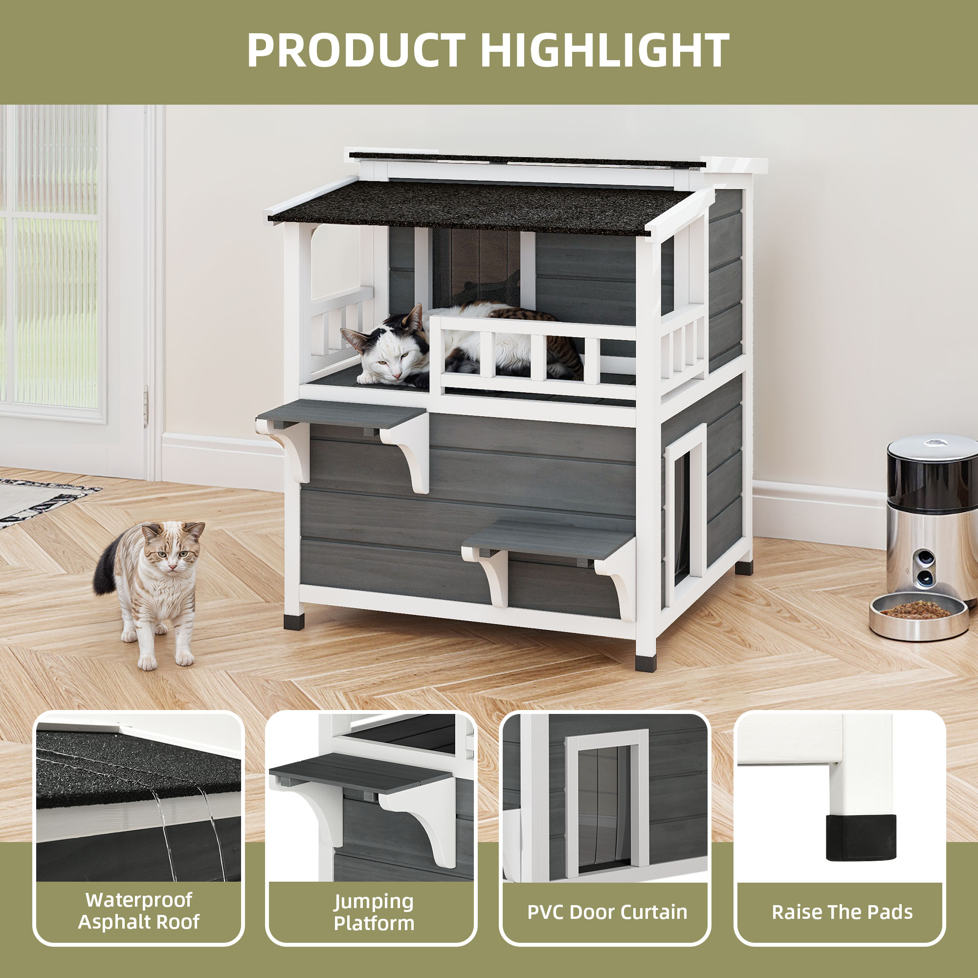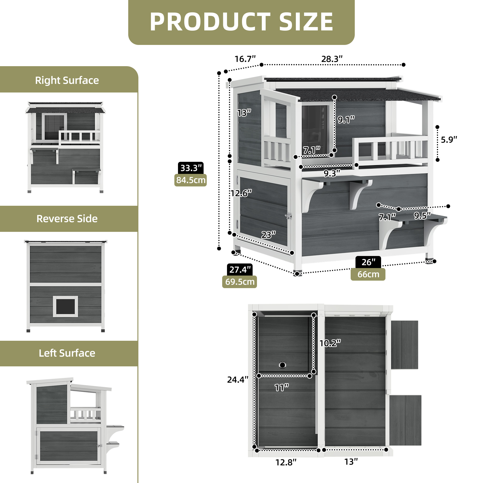 1. Spacious Dual-Level Design: This two-story cat house offers separate areas for play and rest, providing your cats with ample room to explore. The large balcony gives them a perfect vantage point to observe their surroundings, enhancing their outdoor experience.