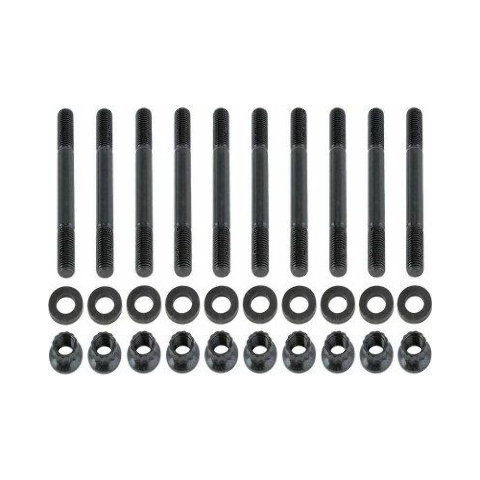 Main Studs There are many important reasons to use ARP main stud kits, including the elimination of main cap walk and fretting, as well as protecting the threads in your engine block. All kits come complete with hardened parallel-ground washers and high quality nuts. Some applications have provisions for mounting windage trays and have specially designed standoff studs with serrated lock nuts to position the windage tray and lock it securely in place. The studs are manufactured from 8740 chrome moly steel, heat-treated in-house to 200,000 psi tensile strength, and precision J-form threads rolled after heat-treat to create a fastener that has threads 1000% stronger than others. Main Bolts Far superior to any other main bolt kit offered for use in competition engines, ARP main bolts are designed to meet the exacting standards and demands of professional engine builders. Forged from 8740 chrome moly, all bolts feature generous under-head radius and rolled threads for the utmost reliability. The threads are rolled after heat-treating, which makes them about 1000% longer fatigue life than most main bolts, which are threaded prior to heat-treating. Available in the popular High Performance Series, which, at a nominal rating of 180,000 psi, is a premium replacement for OEM fasteners, or the 200,000 psi nominal rated Pro Series, application-specific main bolts with reduced wrenching head and are designed for use in competition applications. Parallel-ground, hardened washers are included with each kit.