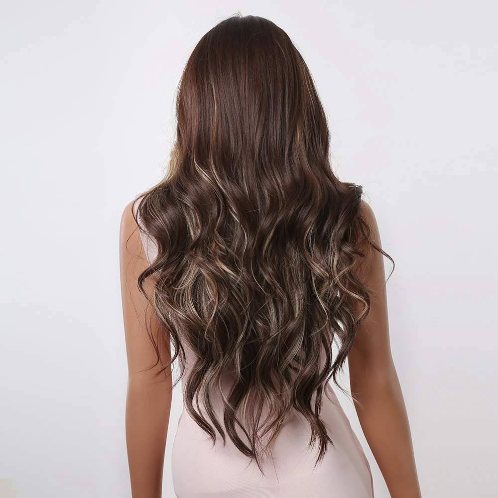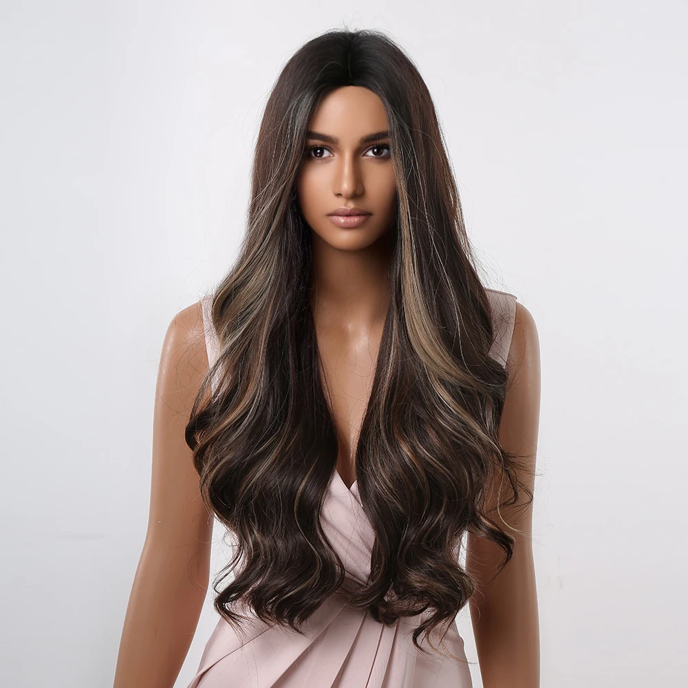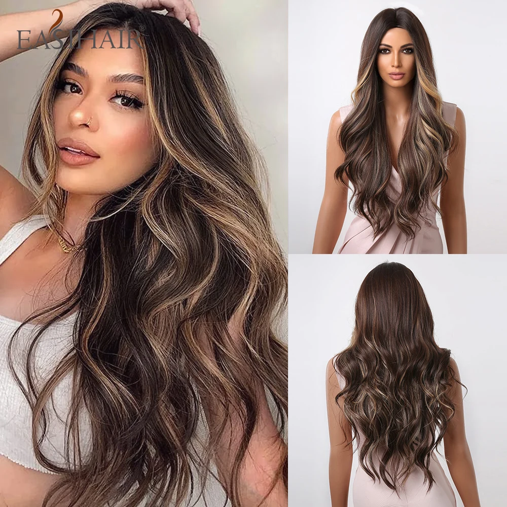 EASIHAIR Long Brown Ombre Synthetic Wig for Black Women Super Long Wavy Wigs Cosplay Water Wave Wig Heat Resistant