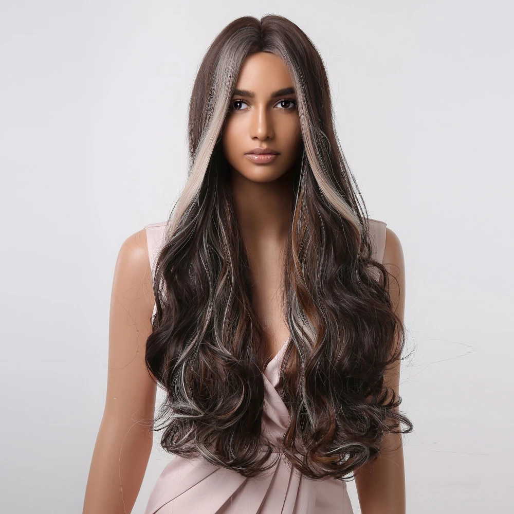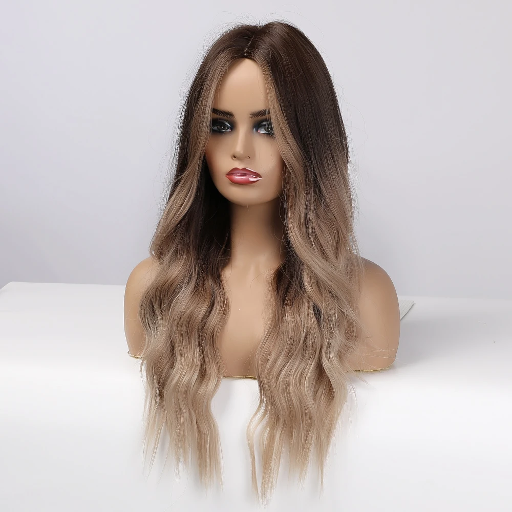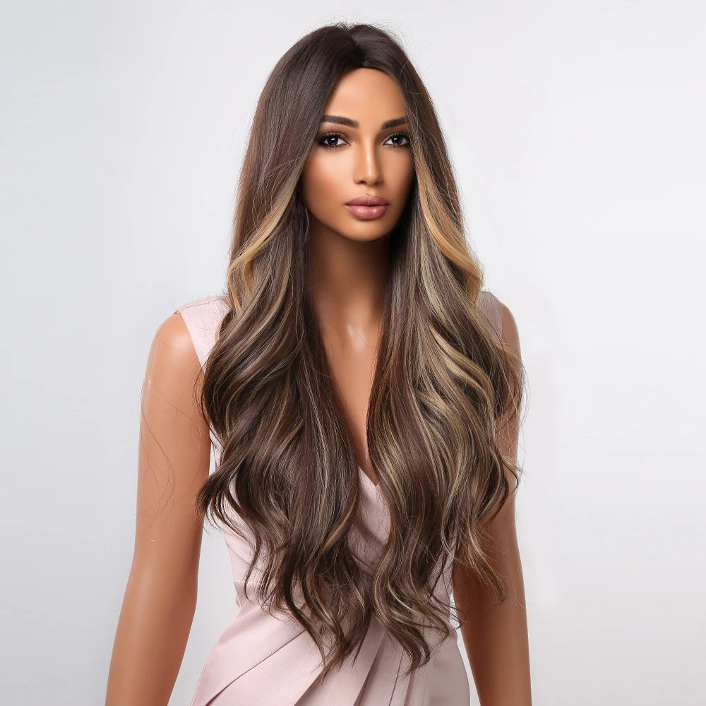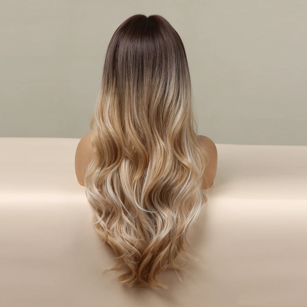 EASIHAIR Long Brown Ombre Synthetic Wig for Black Women Super Long Wavy Wigs Cosplay Water Wave Wig Heat Resistant
