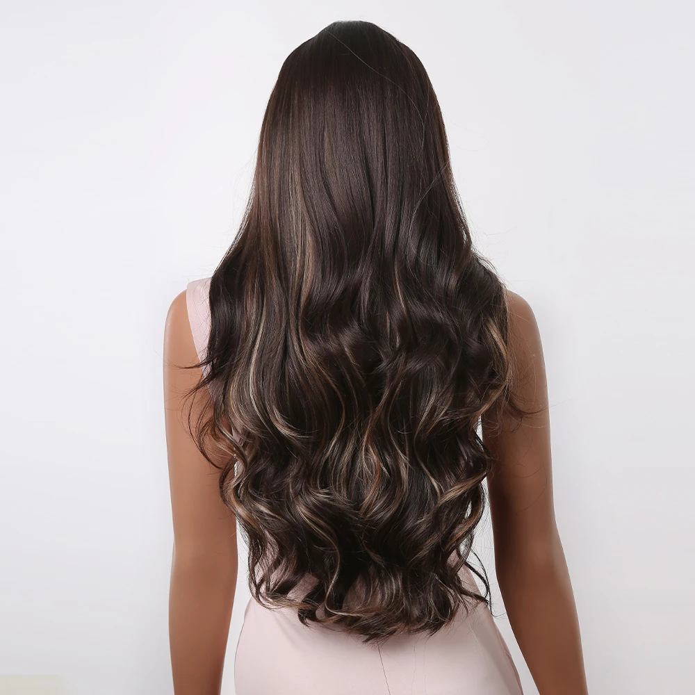 Unique Style--24inch Long Wavy hair wig Dark brown with highlight.(There may slightly color difference due to different display& light)