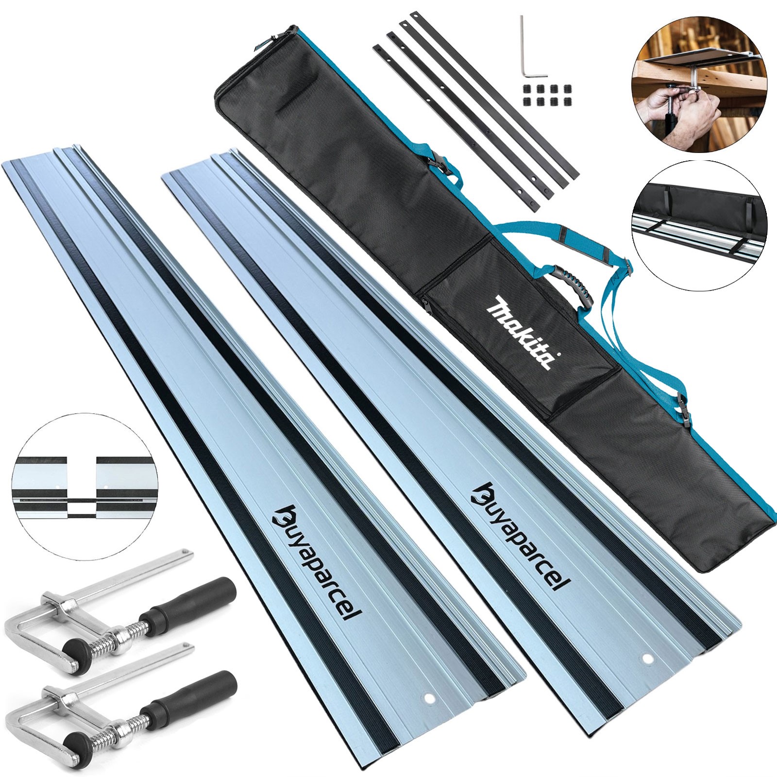 Makita SP6000J 240v Plunge Cut Circular Saw 165mm 2x1.5m BAP Guide Rails + Clamp