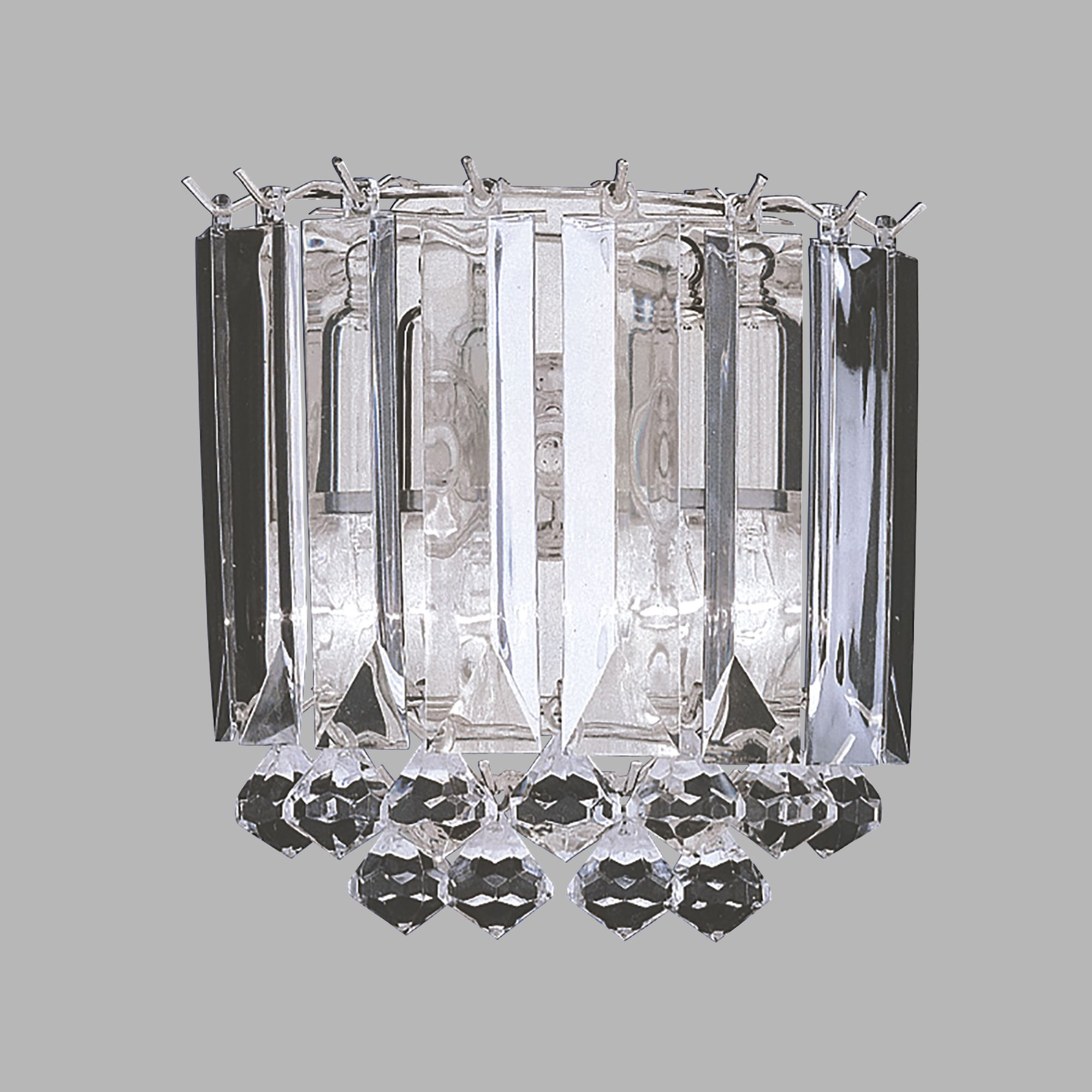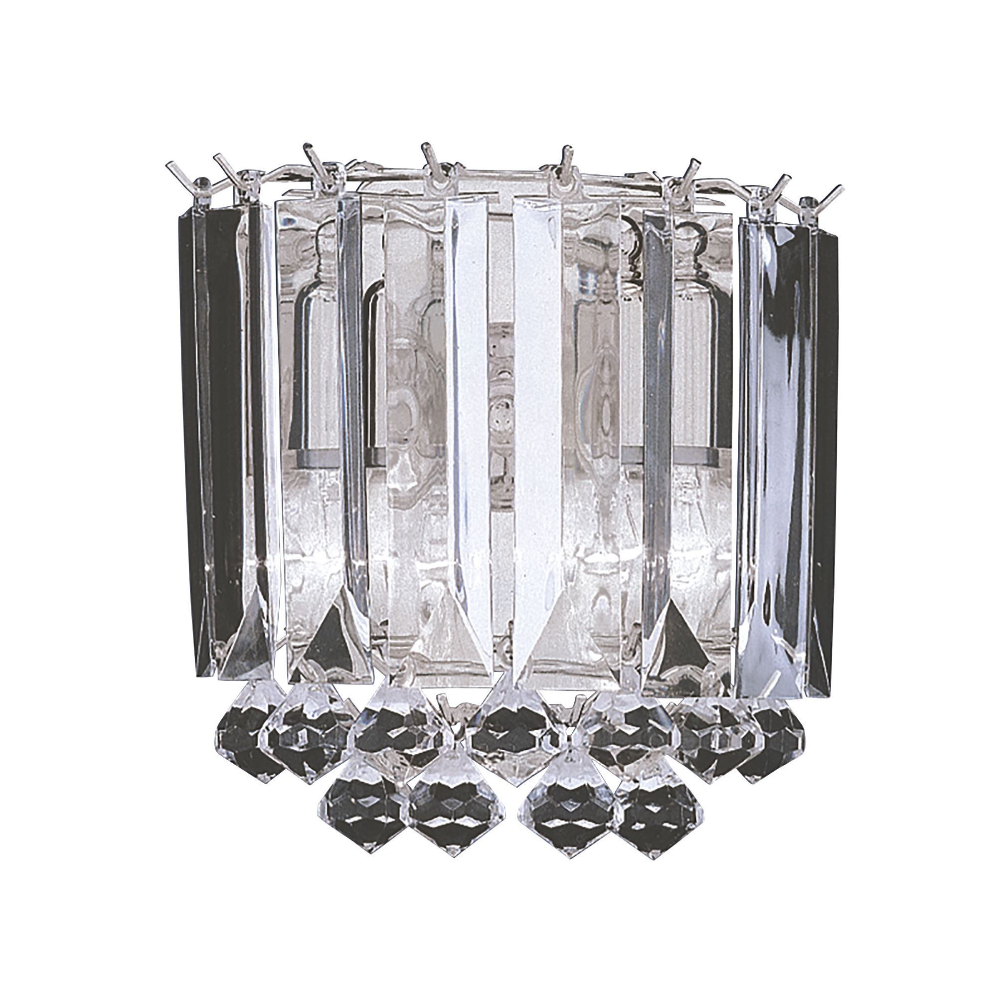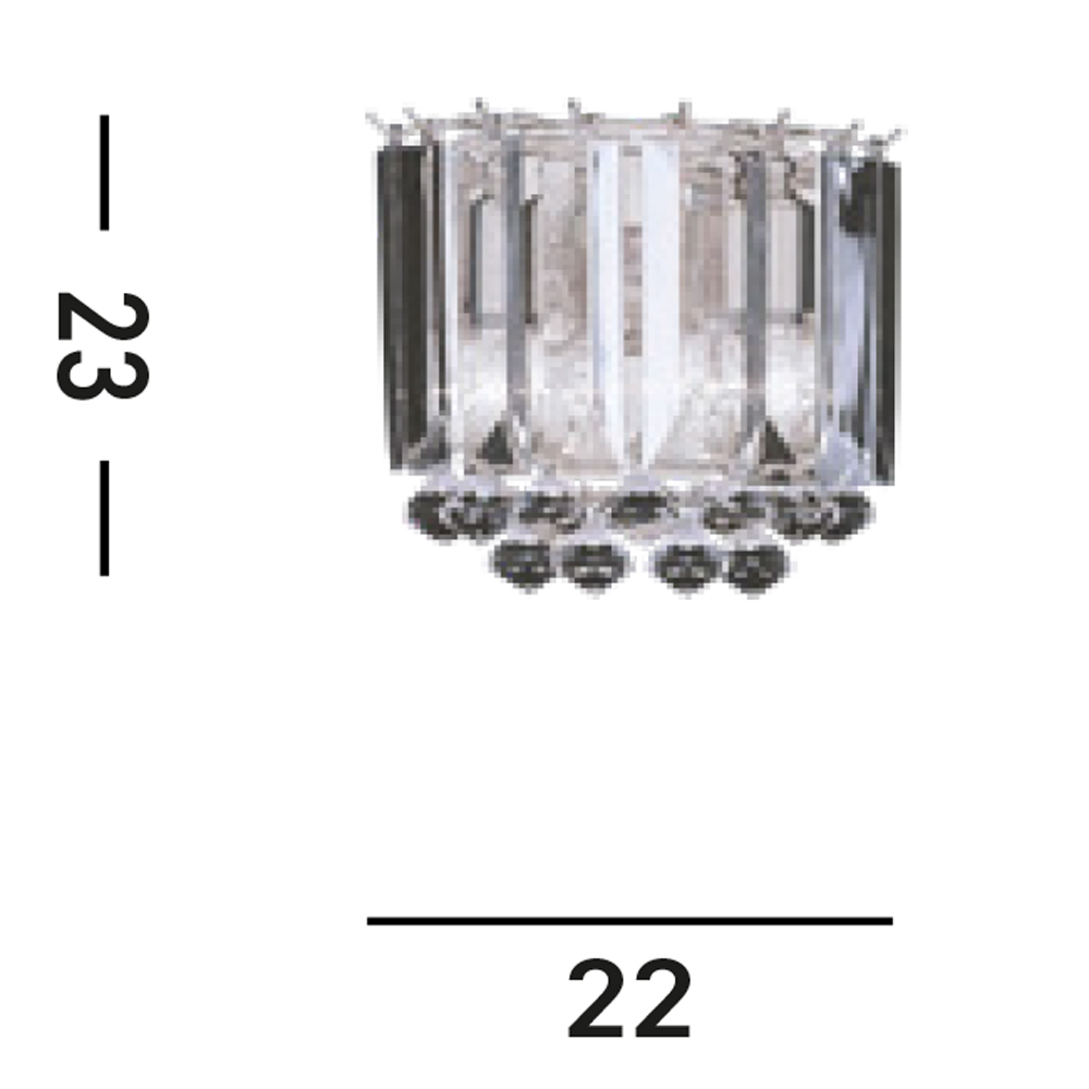 Il supporto da parete per luci Sigma 2 è una sorprendente miscela di eleganza vintage e silhouette audace. La struttura con finitura cromata è ornata con sfere di cristallo trasparente e ricoperta da cascate di scintillanti gocce di prismi acrilici che riflettono magnificamente le due luci per un'eleganza glamour che sarà una magnifica caratteristica in qualsiasi camera da letto, soggiorno, sala da pranzo o corridoio.