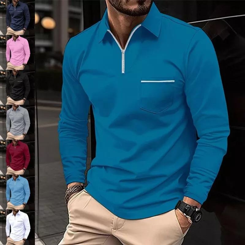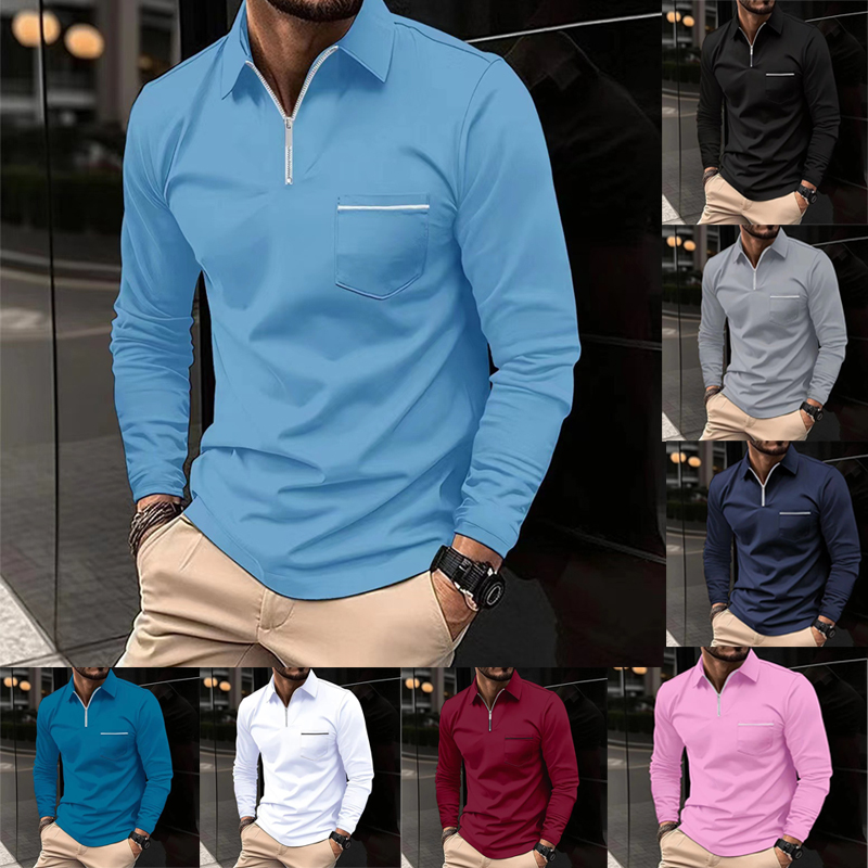 Style: Men\\'s quarter zip shirt, long sleeve V-neck shirt, plain top, spring/fall basic T-shirt