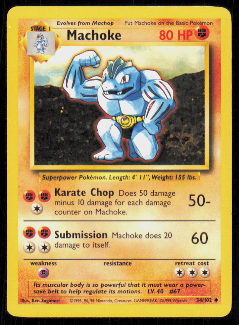 2000 Pokemon Base Set Unlimited Machoke Uncommon #34/102 - Poor