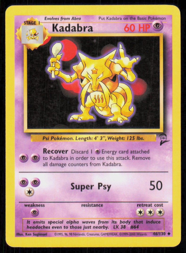 2000 Pokemon Base Set 2 Unlimited Kadabra #46/130 - Poor