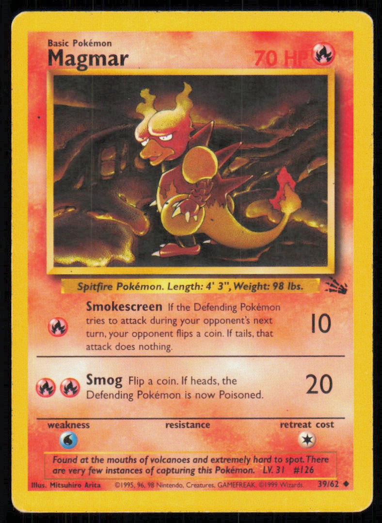 1999 Pokemon Vintage WOTC Fossil Magmar #39/62 - Poor