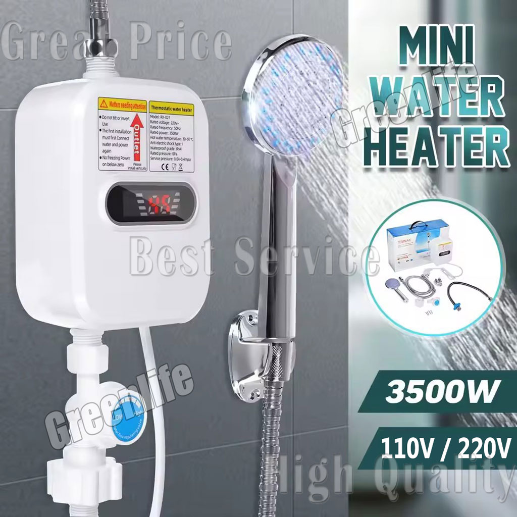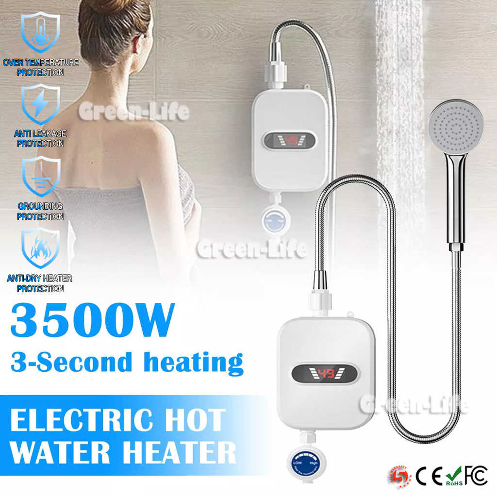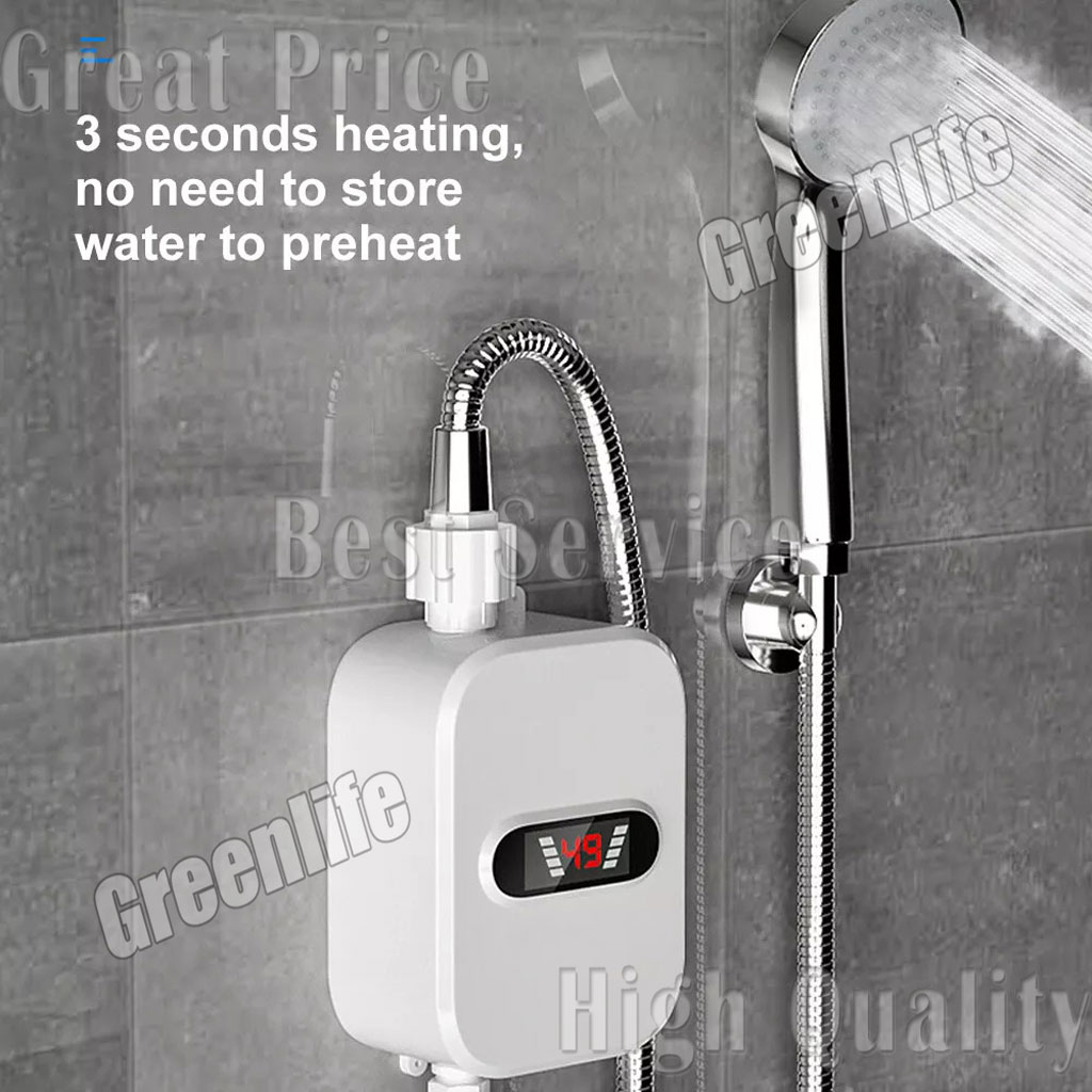 Mini Instant Water Heating Shower Set LCD Digital Display Kitchen Bathroom Tankless Hot Water Faucet Heater
