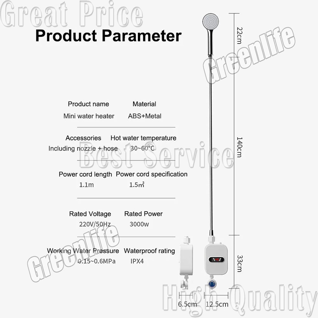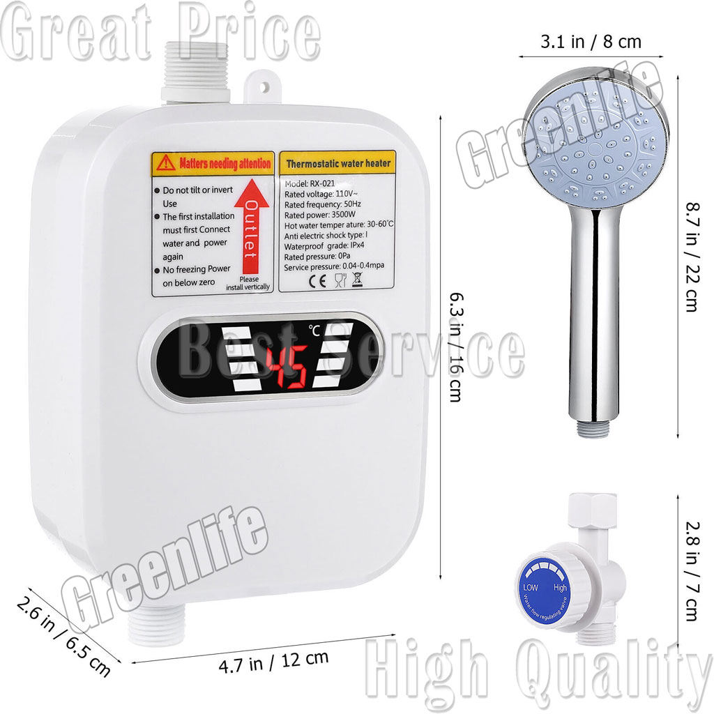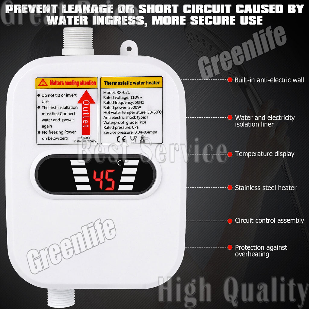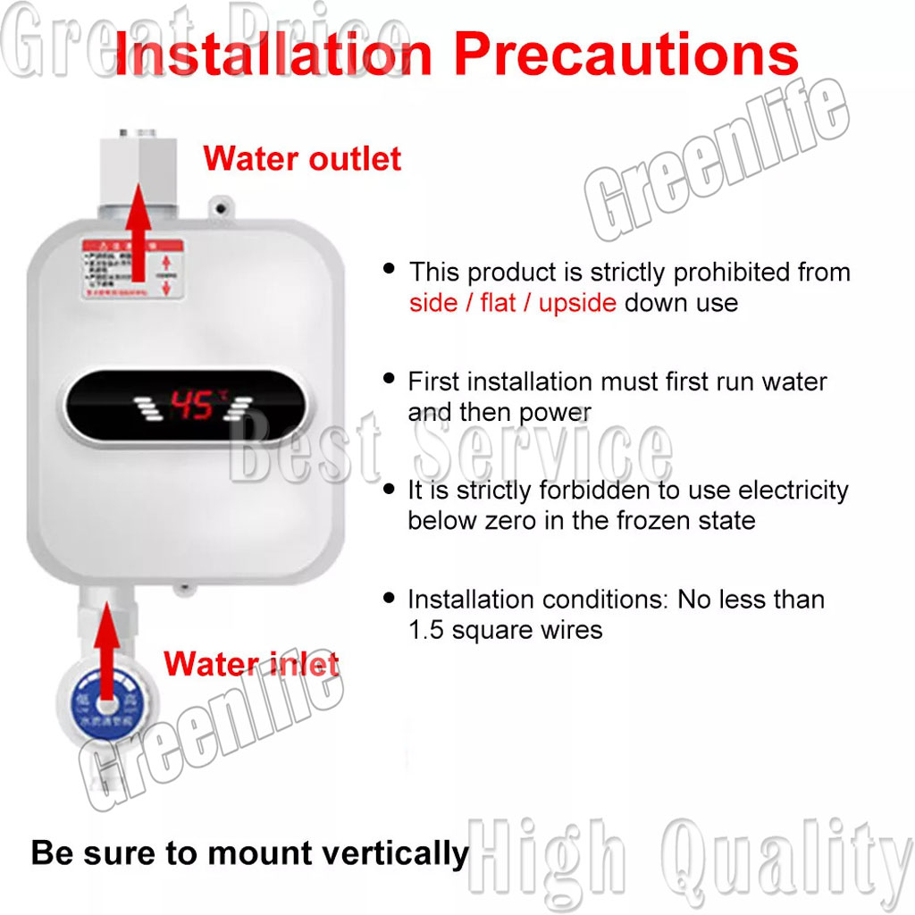 * Safe heater, power saving, water saving, no pollution, no exhaust gas.