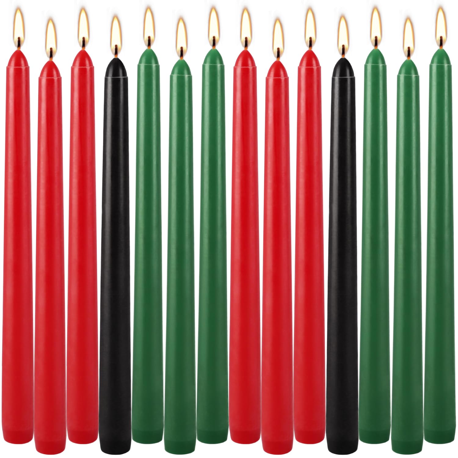 Set of 14 Kwanzaa Taper Candles - Red, Green & Black - Dripless & Long-Lasting