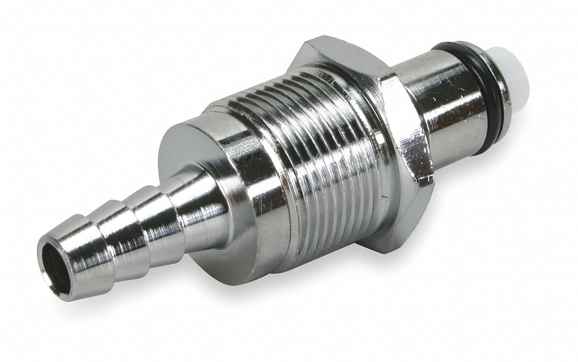 Panel Mount Insert, Application Air, Non-Potable Water, Fitting Side A Connection Type Barbed, Fitting Side B Connection Type Insert, Fitting Side A Tube Inner Diameter 1/4 in, Flow Control Type Shut-off, Fitting Material Brass, Overall Length 1 31/32 in, Specific Fitting Shape Panel Mount Insert, Finish/Coating Chrome Plated, Material Grade CA360, Maximum Operating Pressure 250 psi, Maximum Operating Temperature 180 Degrees F, Minimum Operating Temperature 40 Degrees F, Series PMC12 Package of 4