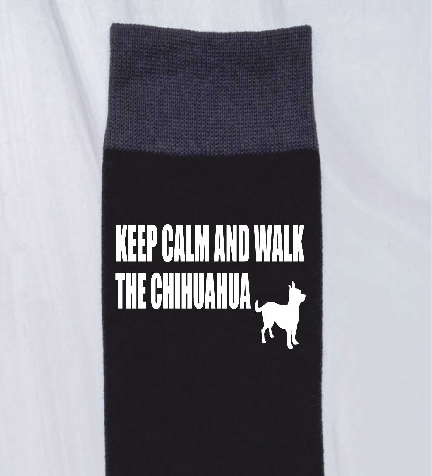 Keep Calm & Walk The Chihuahua Men's Black Novelty Socks Dog Lover Gift