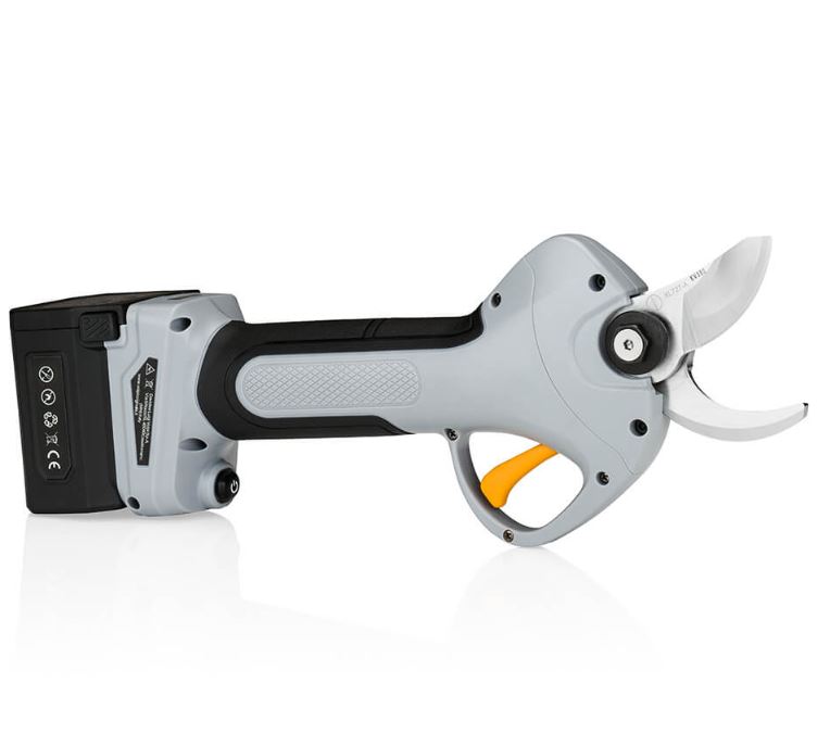 KV380 sono le forbici elettroniche cordless con batteria al litio ricaricabile, taglio progressivo e automatico dalle alte prestazioni, firmate Volpi Originale. Le lame di taglio sono in acciaio e la lama mobile è intercambiabile, con tre posizioni di apertura lame memorizzabili: adatte per la potatura in generale (parchi, giardini e agricoltura) e per una vasta tipologia di applicazioni. L'apertura massima delle lame è di 36 mm e con un peso di soli 0,79Kg, permettono un lavoro confortevole e privo di sforzi. Sono dotate di motore brushless e sistema di movimento a ingranaggi e la funzione di spegnimento rapido stand-by permette di conservare la carica della batteria quando non in utilizzo.