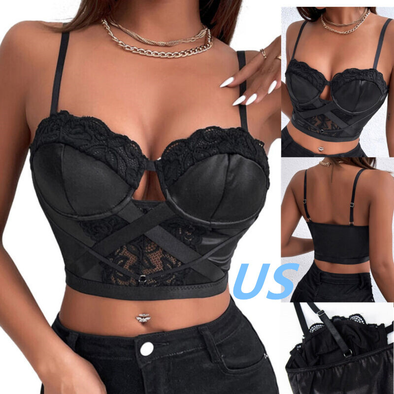 Womens Adjustable Spaghetti Straps Sheer Mesh Camisole Sleeveless Crop Top Party Club Vest.