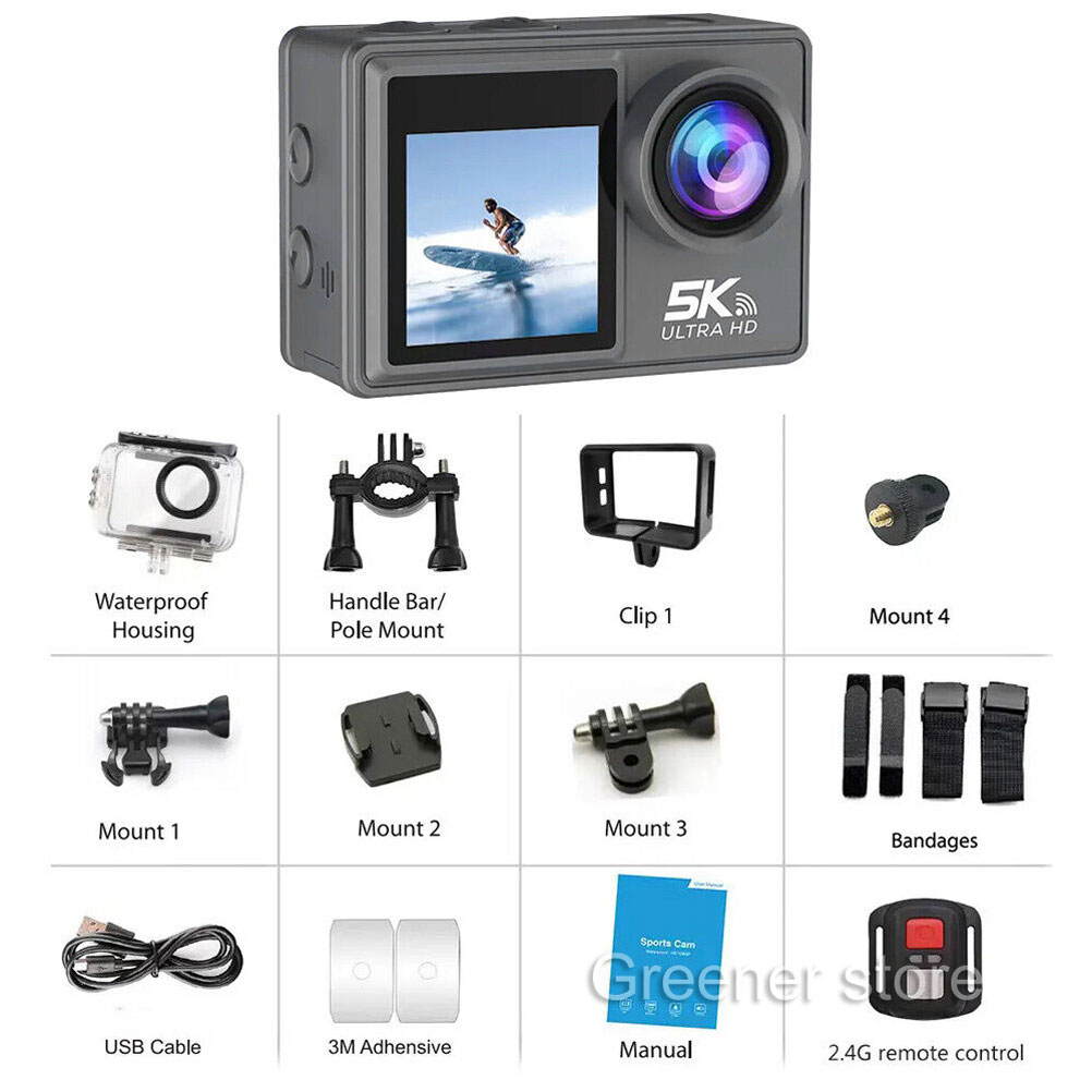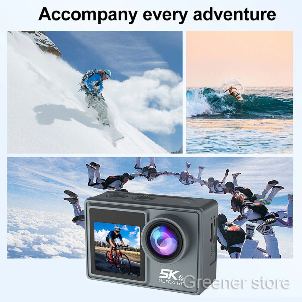 4**5K Ultra HD action camera: Professional 5K30Fps video with 50MP photos at up to 30 frames per second for incredible photos, which is 5 times the resolution of traditional high-definition cameras. It can be easily mounted on helmets, bicycles, surfboards, cars and other objects. You can get more fun from your favorite sports.