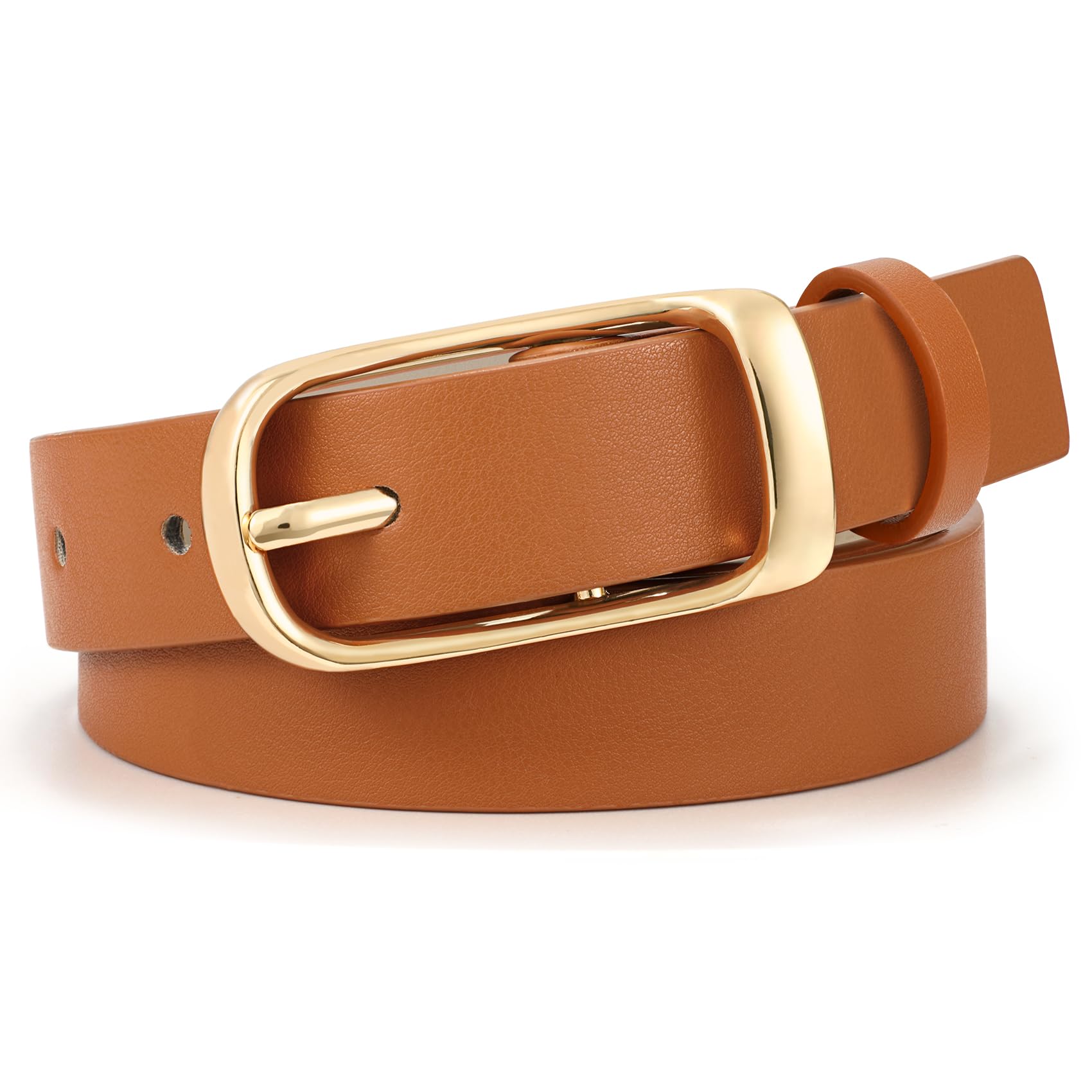 • Women Leather Belts: women's belt is made of quality faux leather, soft and durable for long lasting wear and resistance to scuffs and scratches, 0.9 inches width leather help to make your outfit look more elegant, fresh and lively in any season.