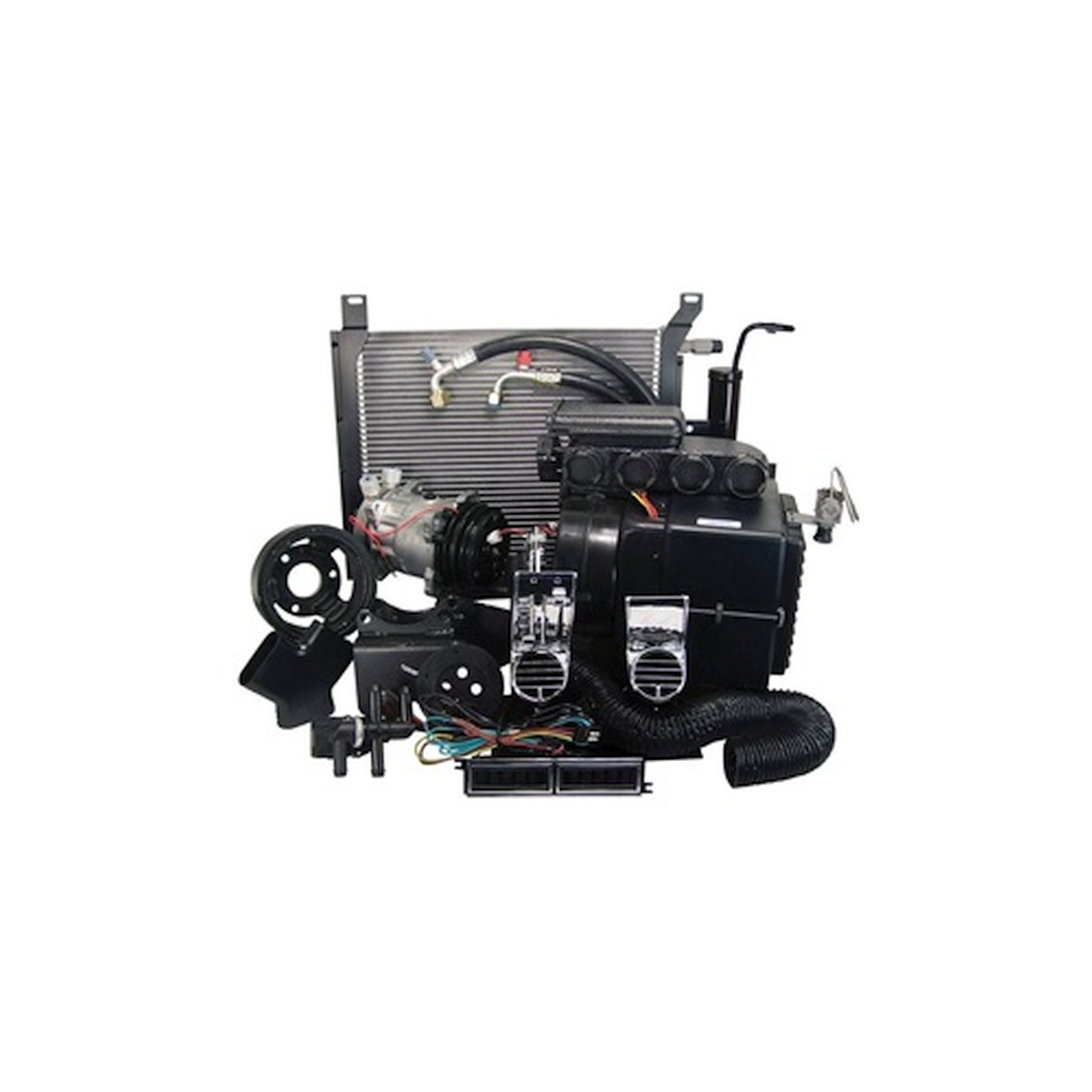 Complete heater air conditioning conversion system with upgraded electronic controls. Includes factory air conditioning control panel and right hand dash vents. Designed to be used we 134a refrigerant.