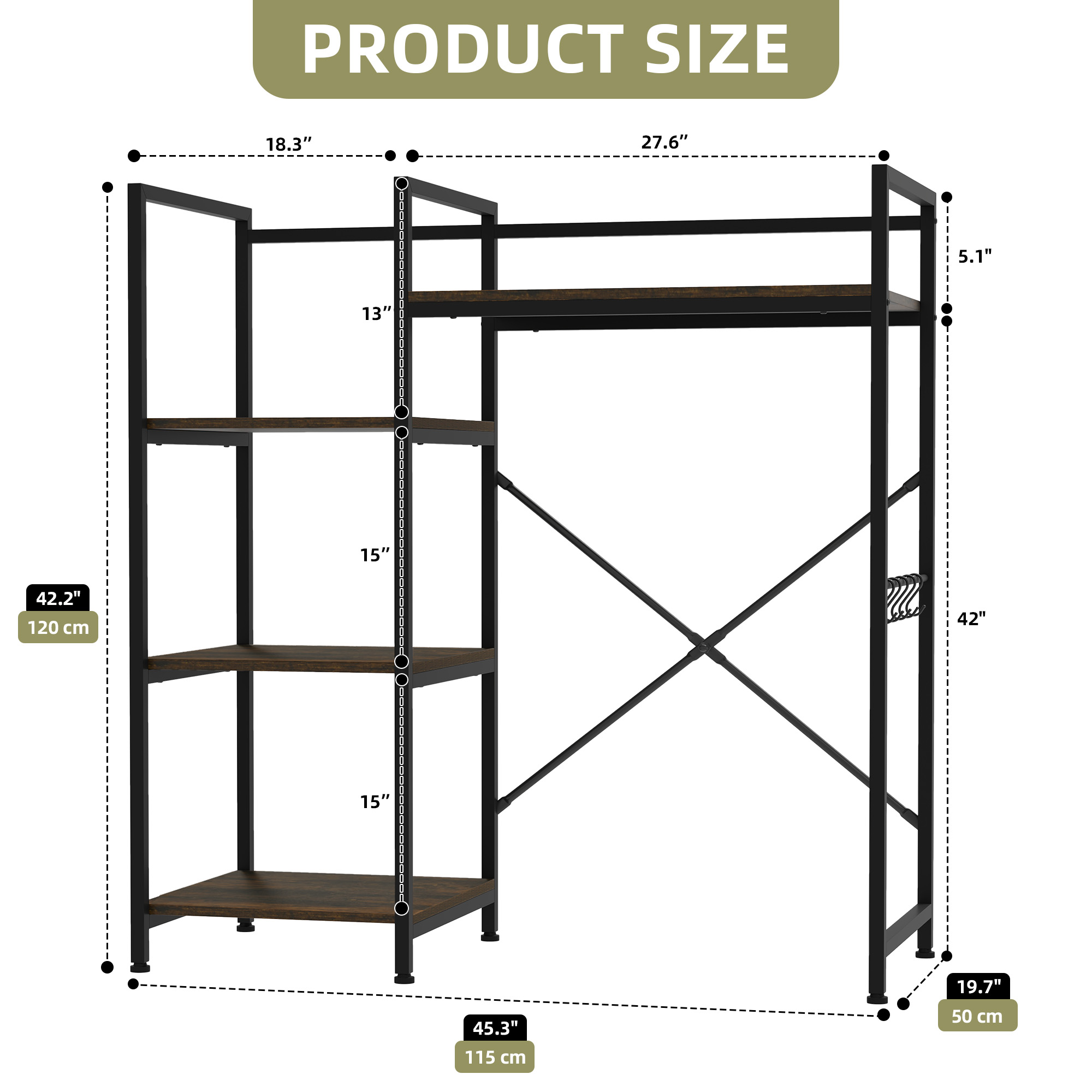 1. Product Dimensions: 45.3"L x 19.7"W x 42.2"H