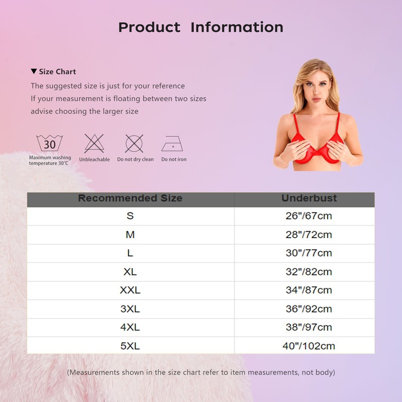 Womens Open Cups Underwired Bra Tops Adjustable Straps Sheer Mesh Brassiere Underwear.
