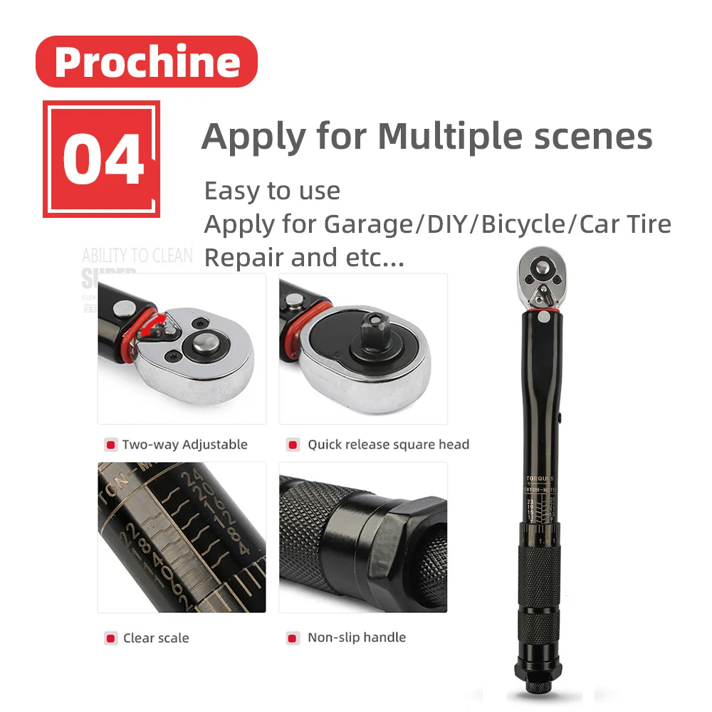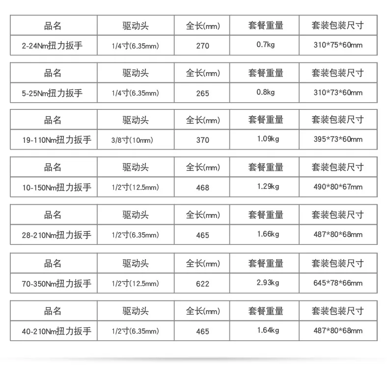 2-210N.m Torque Wrench Square Drive 1/2 3/8 1/4 Preset Car Torques Keys For Bicycle Automotive Force Measure Workshop Hand Tools- 1/4",3/8" ,1/2"Square Drive2-210N.mtorque range (fully adjustable)1/4 inch torque wrench: 2-24N.m, 5-25N.m3/8 inch torque wrench: 5-60N.m, 19-110N.m1/2 inch torque wrench: 28-210N.m, -Supplied in a blow molded case for easy storage and transportation-Ideal for professional or occasional use.-Manufactured from chrome vanadium steel for strength and durability-Every bolt on a modern vehicle has a torque setting, and a torque wrench is essential to accurately judge how tight a bolt is.-Smooth action mechanism providing accurate torque settings every time-Fully adjustable torque wrench with ratchet head which when set ensures proper tension and loading settings are applied to nuts and bolts.-so ideal for small vehicles / bikes, etcWhen the required torque setting is reached the wrench produces an audible click and a slight release of tension.-Clockwise torque only but can also be used to undo by the switch of a lever on the ratchet head.