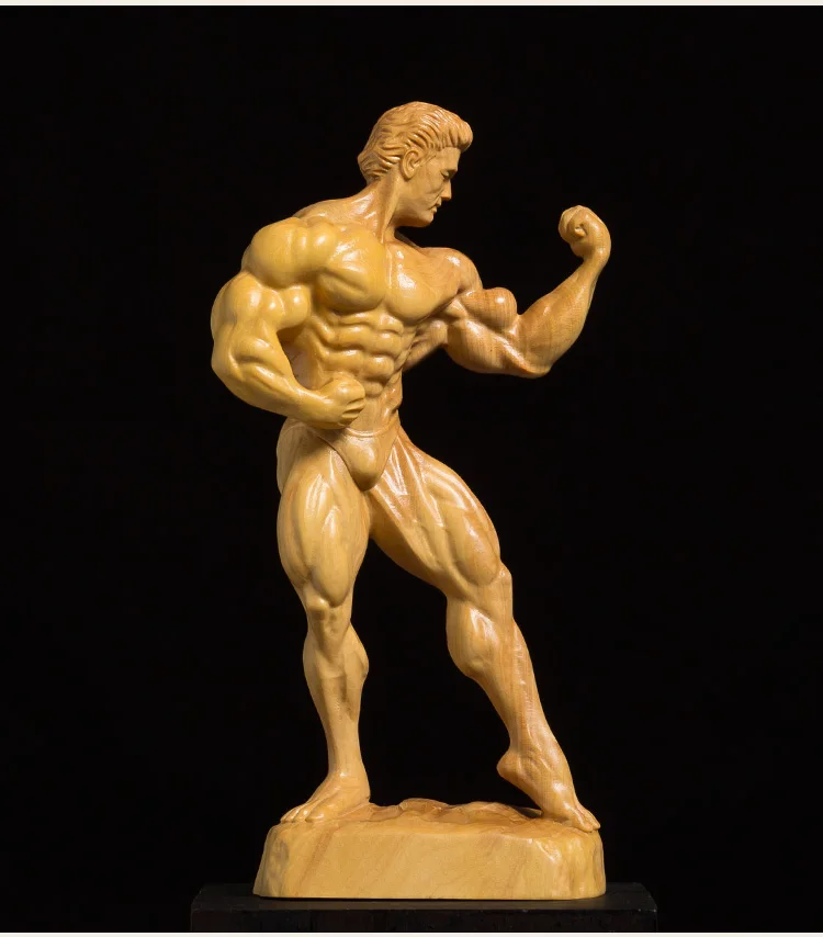 Boxwood figure sculpture bodybuilding muscle male sculpture home decoration