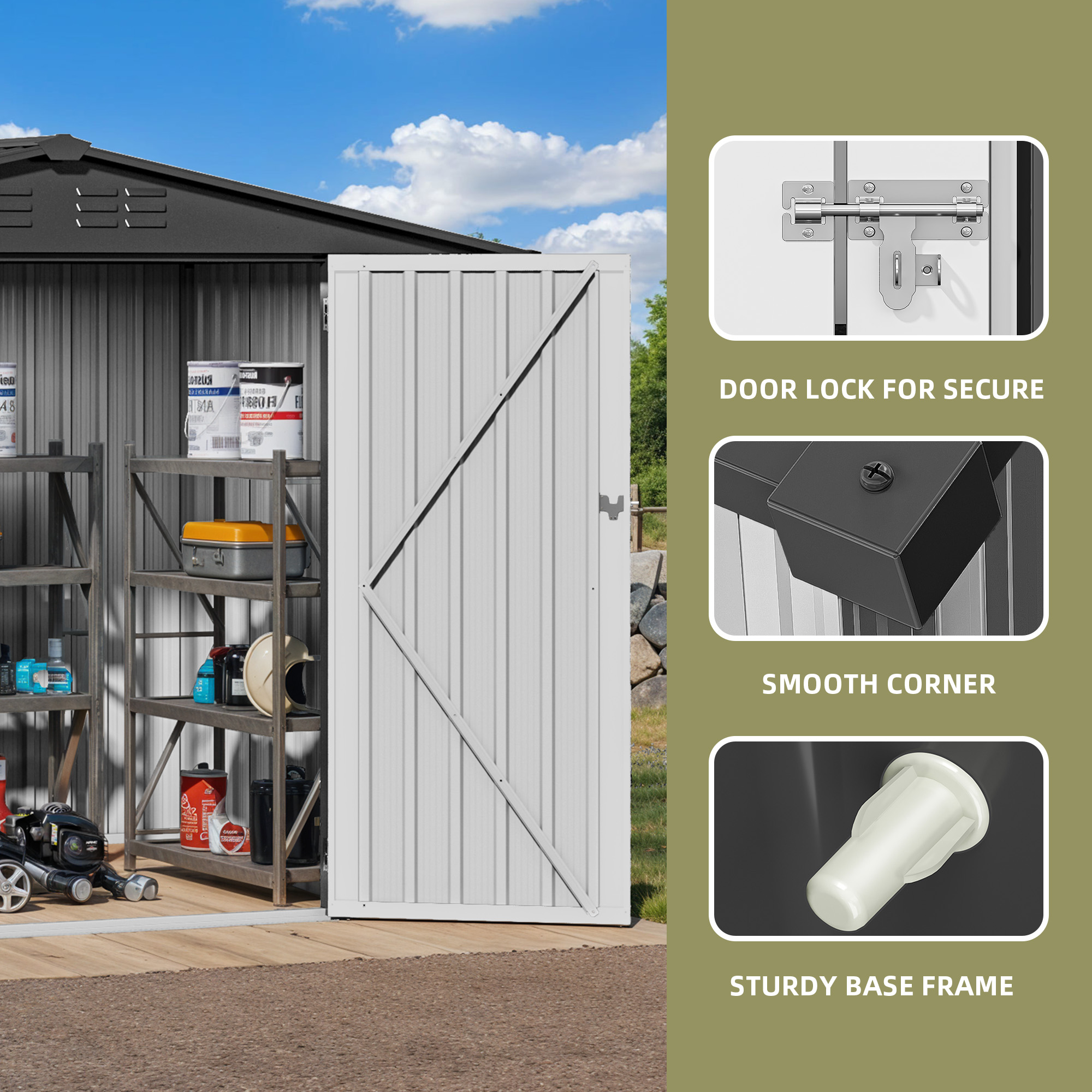 This shed prioritizes durability and weather resistance. Constructed from high-quality galvanized steel with 0.25mm thick panels, it offers exceptional protection against corrosion, water, and wind. The overlapping panels and sloped roof further enhance weatherproofing, ensuring your belongings stay safe and dry in all conditions