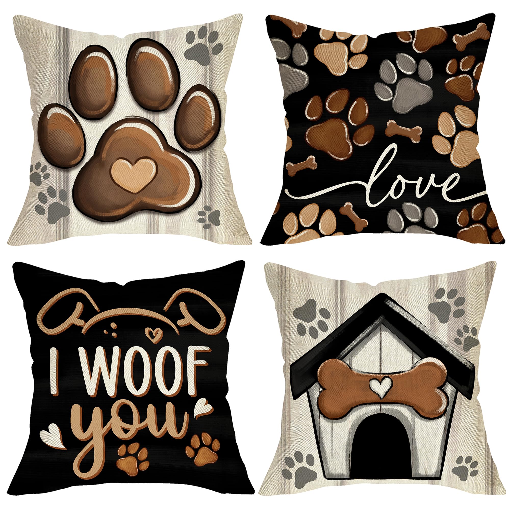 Special Pattern: Comes with 4 packs, these 18 x 18 inches decoration seasonal decorative pillow covers are single-sided printed with cute patterns. The pillowcases are printed with paw prints, puppy, dog house, bone. Besides, our pillow covers have words like I woof you, love