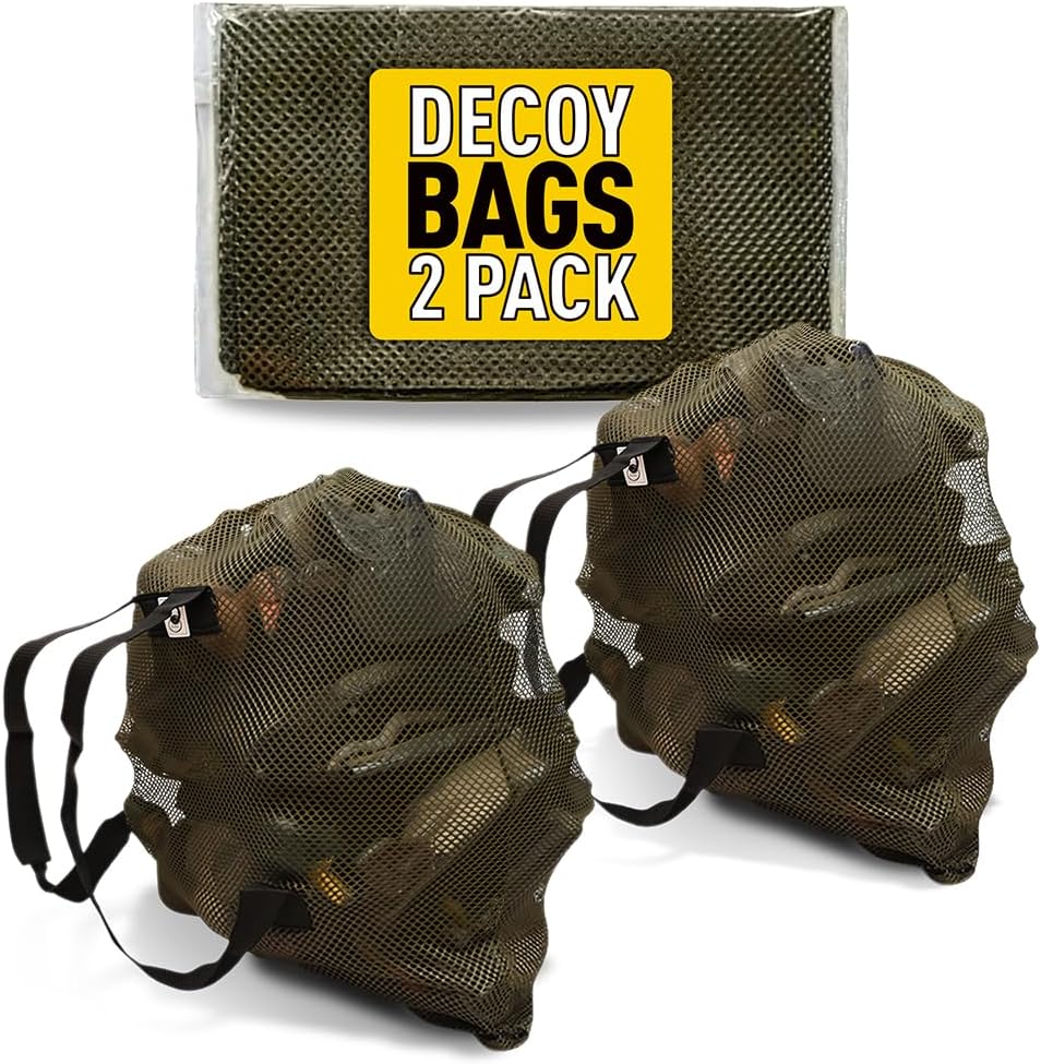 2 QUALITY MESH DECOY BAGS: Duck hunting gear you need. Perfect for duck decoys, goose decoys and turkey decoys. Made from quality mesh, no need to worry about losing your decoy!