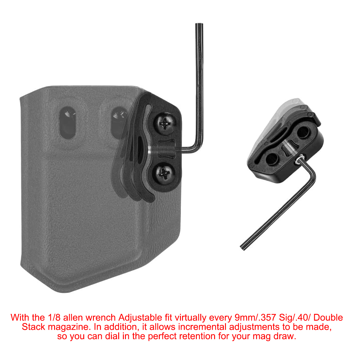 8. Equipped with a 9mm/.357 Sig/.40/ Double Stack magazine sleeve with the same size buckle, it can be used as a spare magazine protector at the same time.