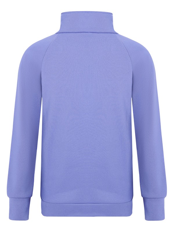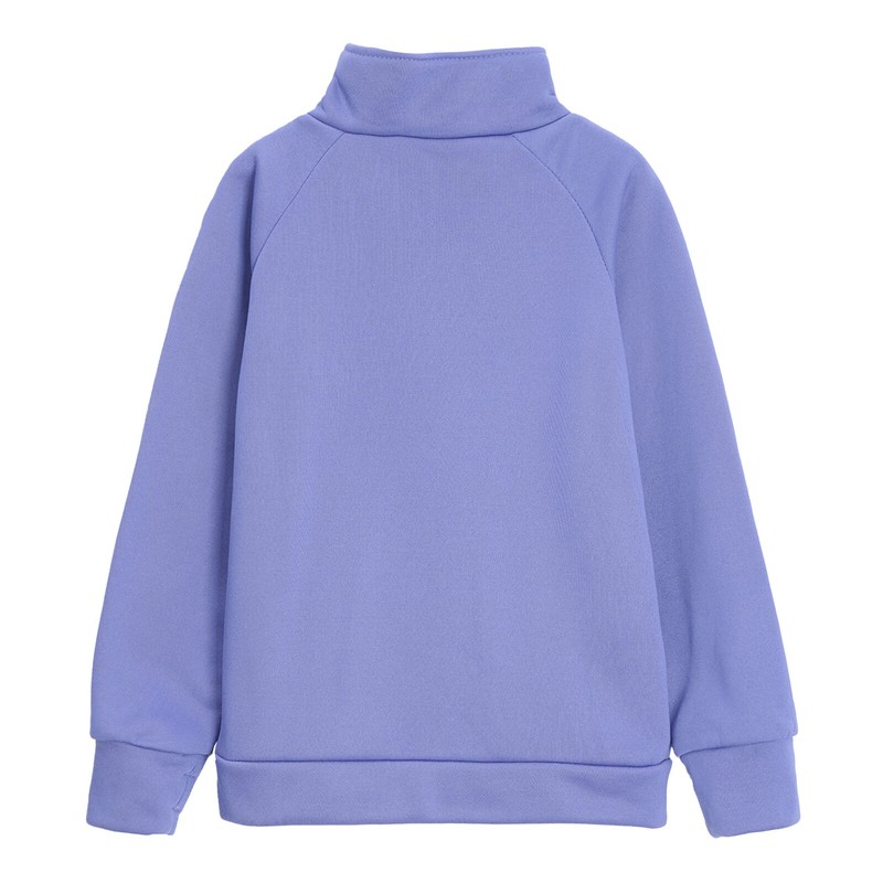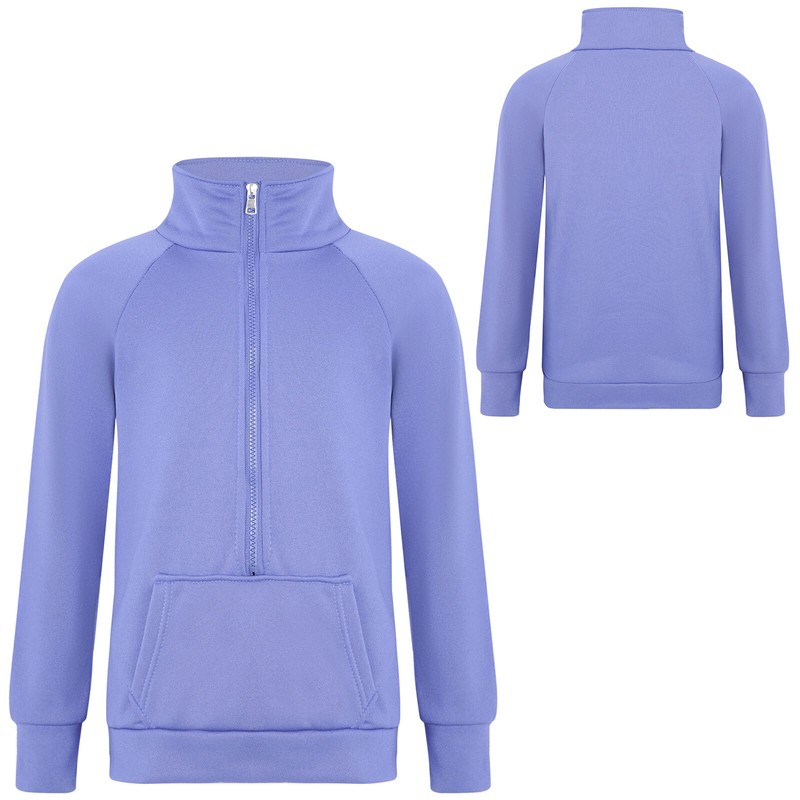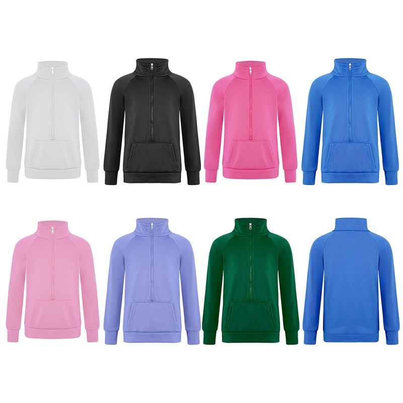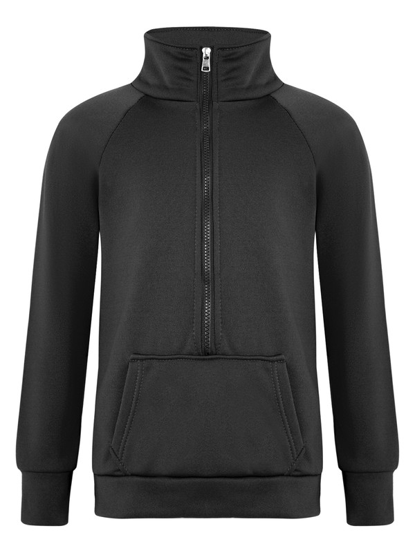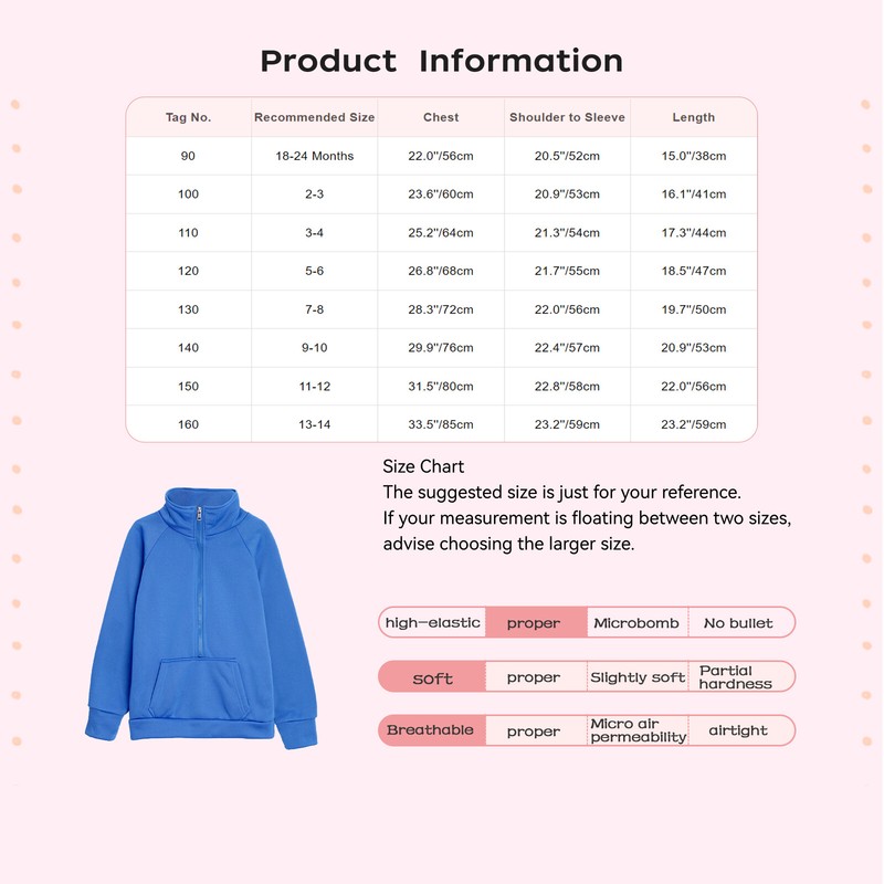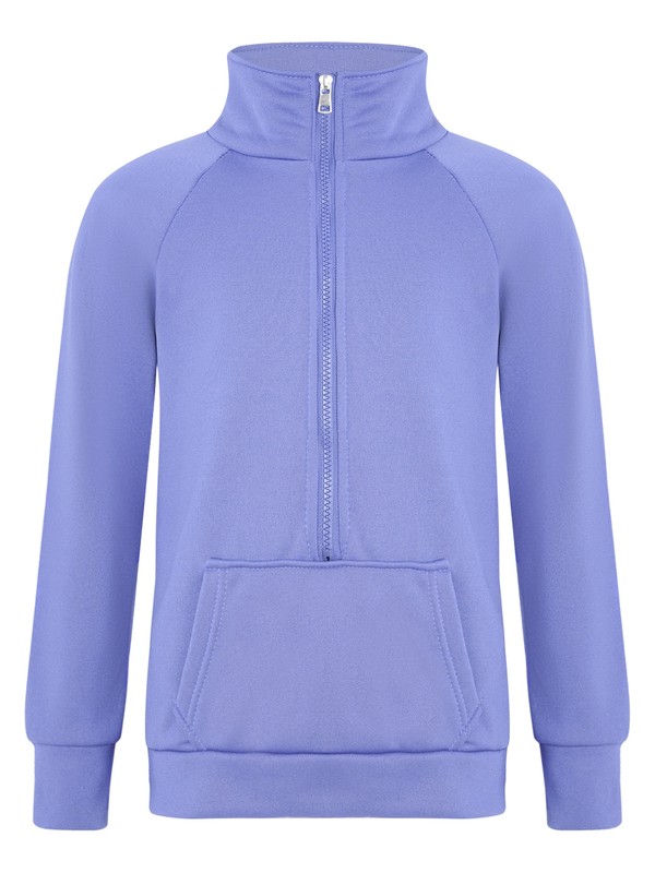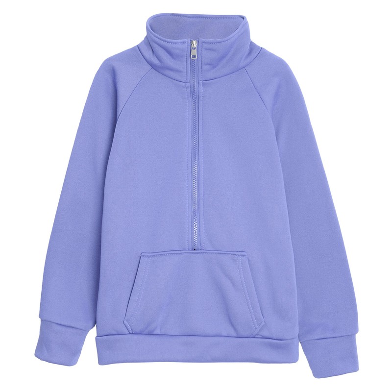 Girl’s stand collar long sleeve pullover sweatshirt with zipper closure allows for easy wearing and taking off.