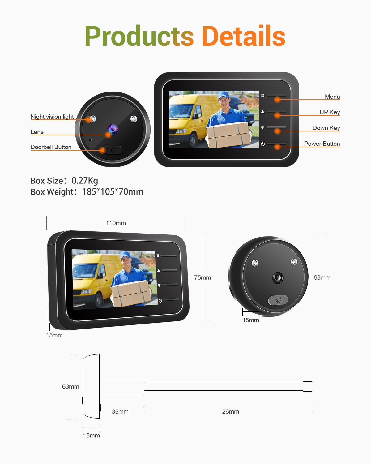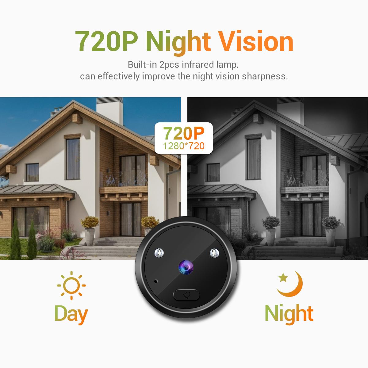 Doorbell function: When the visitor ring the doorbell ,digital door viewer will be ringing and take photo storage you can check it later