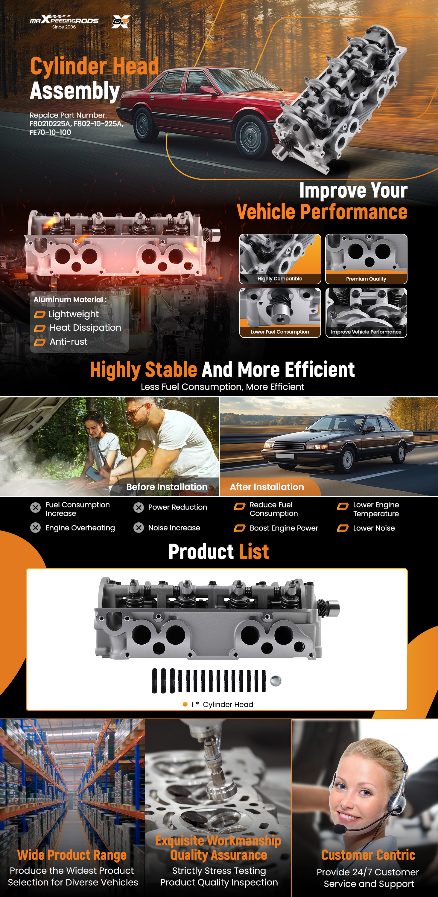 - Assembled with brand new cylinder head, valves, valve seals, springs retainers and camshaft.