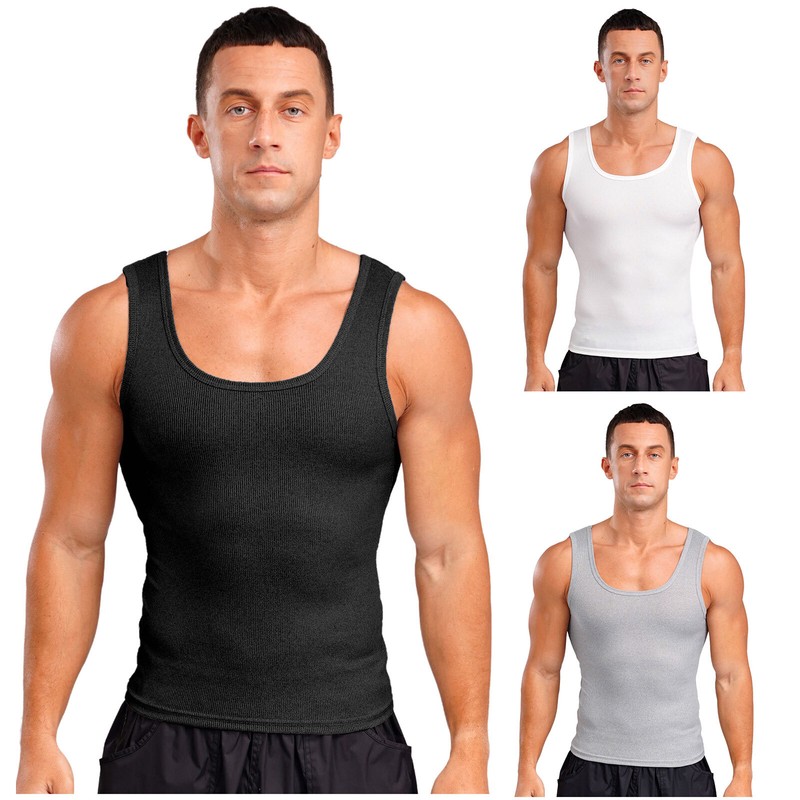 Men’s U neck tank top with sleeveless design shows your arm muscles and keeps your arms cool.