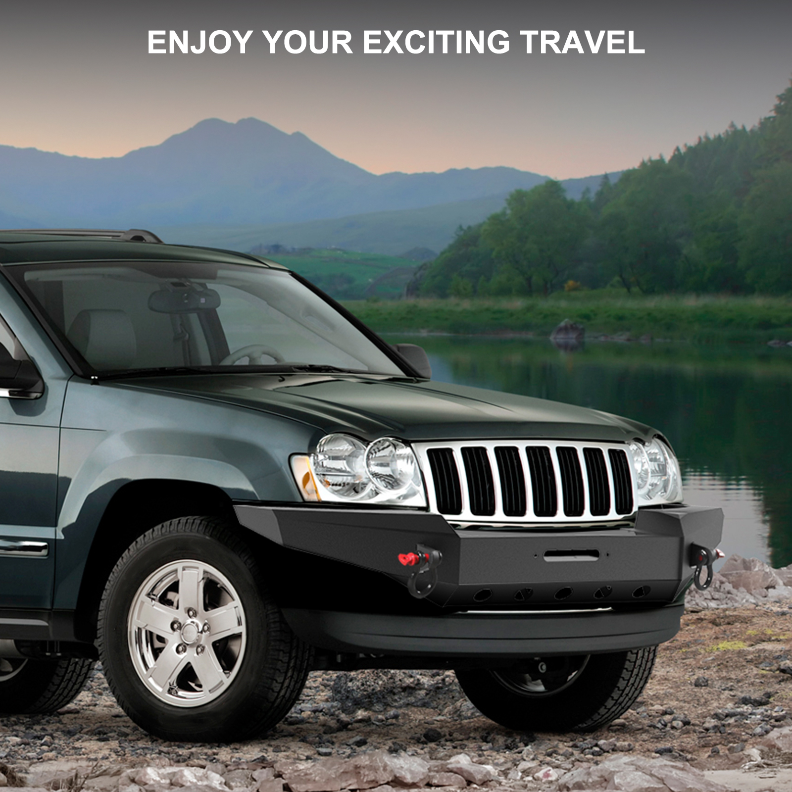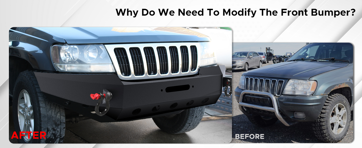 Fitment Front Bumper w/ D-Rings Winch Plate Fit 1999-2004 Jeep Grand Cherokee WJ