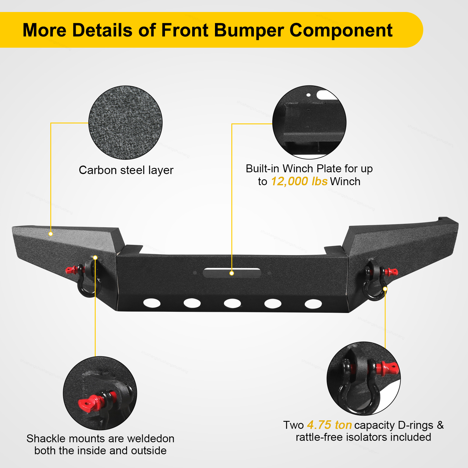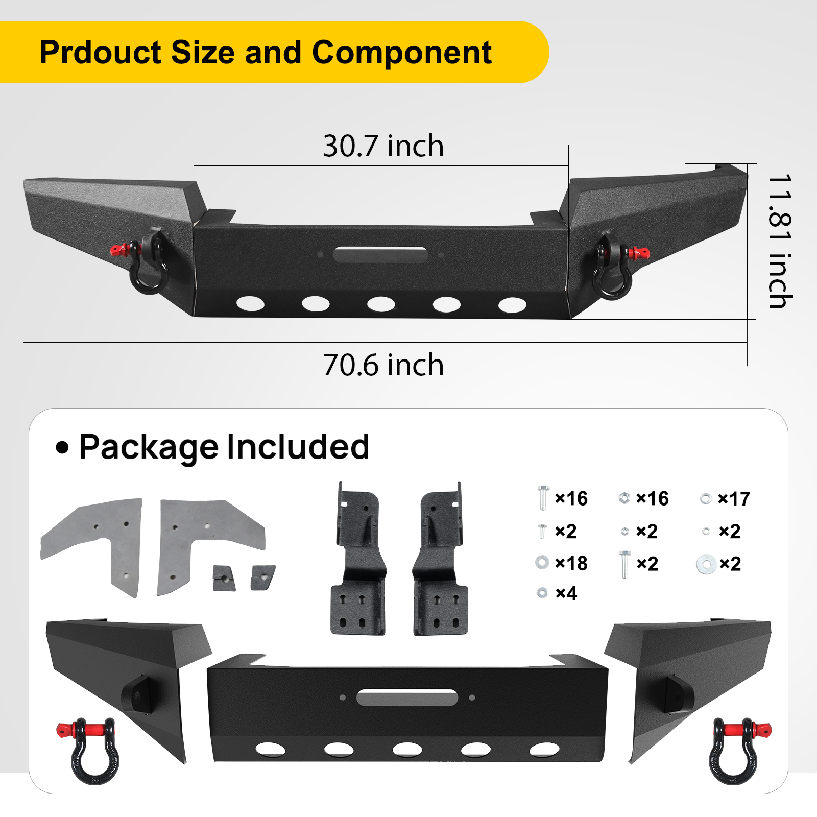 Color : Black(As Pictures) Warranty: 1 Year Material : Q235 Carbon Steel Number of Pieces: 1 Set(2 Packages) Surface Finish: Powder-Coated Placement on Vehicle: Front Material Thickness: 3mm D-Ring Capacity: 4.75 ton