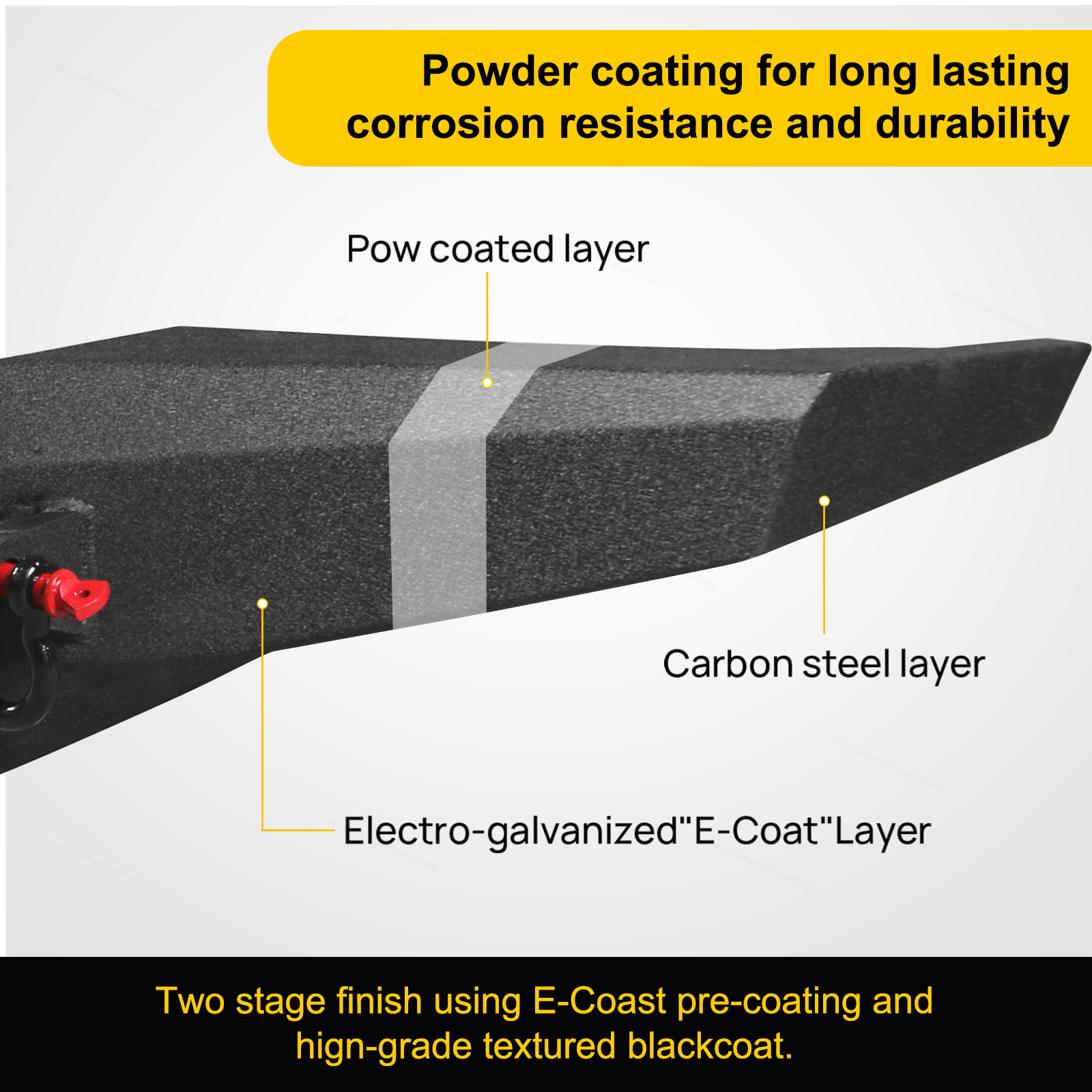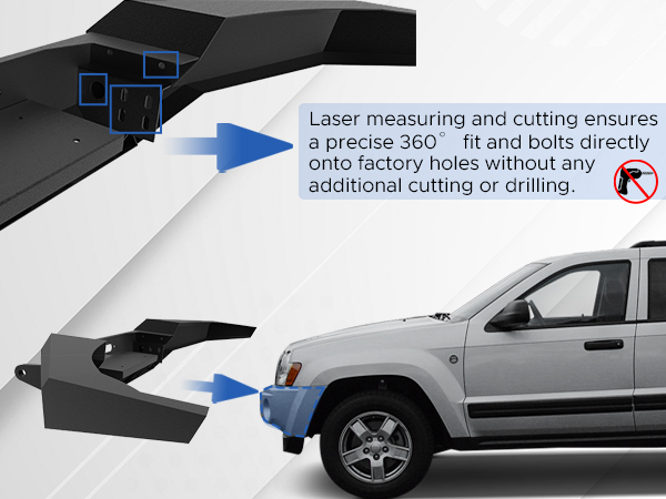 Heavy-duty Carbon Steel and Painting Surface (3mm Material Thickness,Q235 Carbon Steel and 126um Coating Thickness) make our Bumper more Corrosion-resistant and Durable.