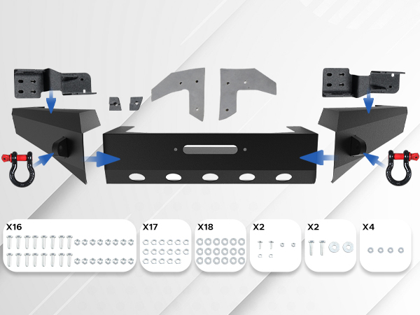 ♥ 【Easy to Replace】Easy, Bolt-on Installation.Our bumper Includes the Paper Instruction and are Engineered to be a Direct Bolt-on Upgrade Using just Basic Hand Tools, so there is No Drilling or Cutting Required for a Clean Straight Forward Installation.