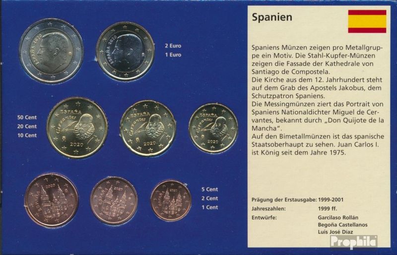 Münzen Spanien 2020 Stgl./unzirkuliert Kursmünzensatz Euro Nachauflage