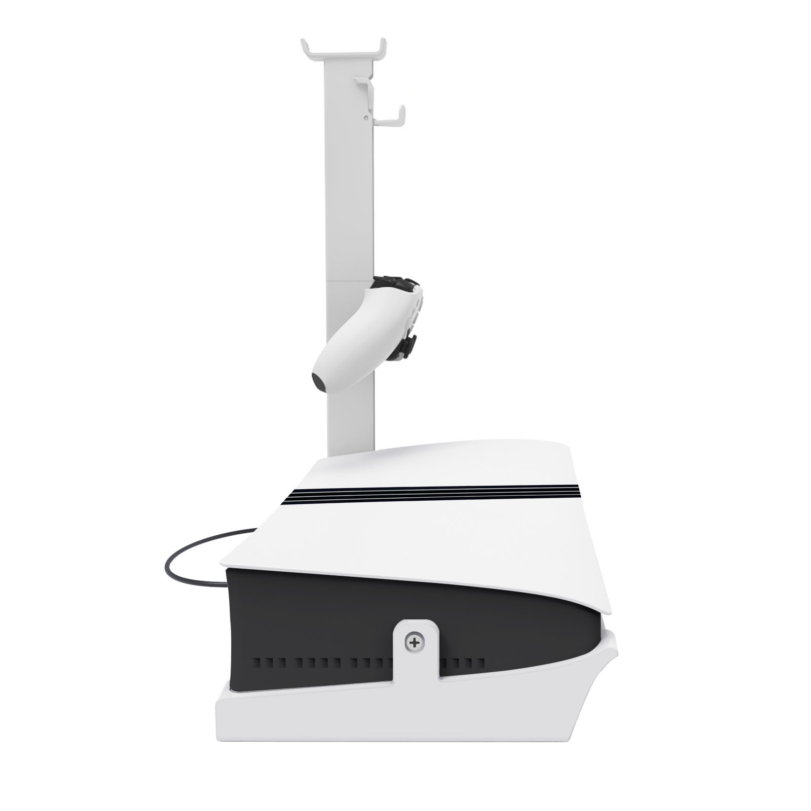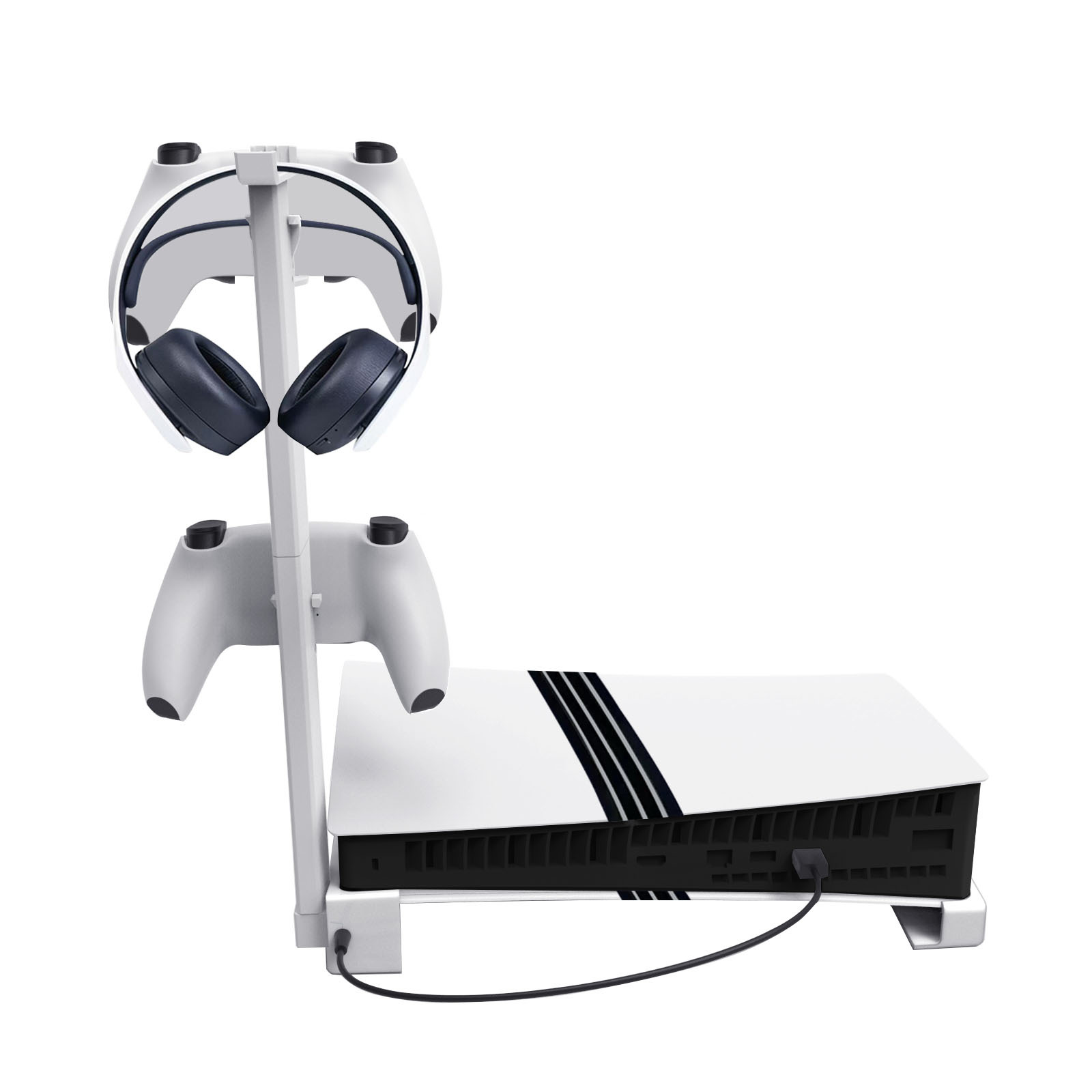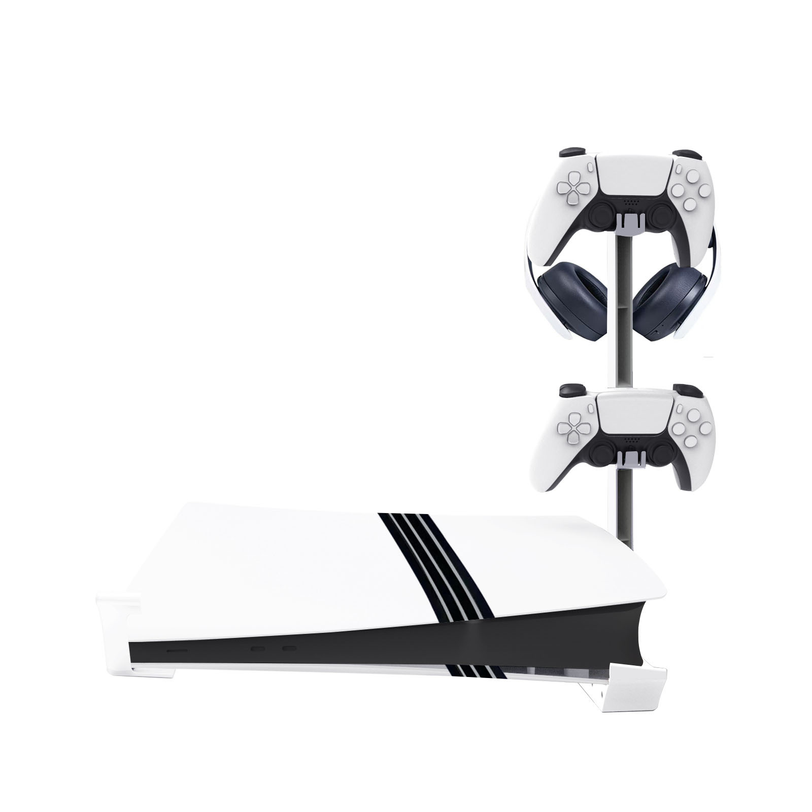 2.The bottom bracket holder can put P5 slim console and P5 pro console, and the extended elevated bracket can store and hang the headset with VR device and handle.