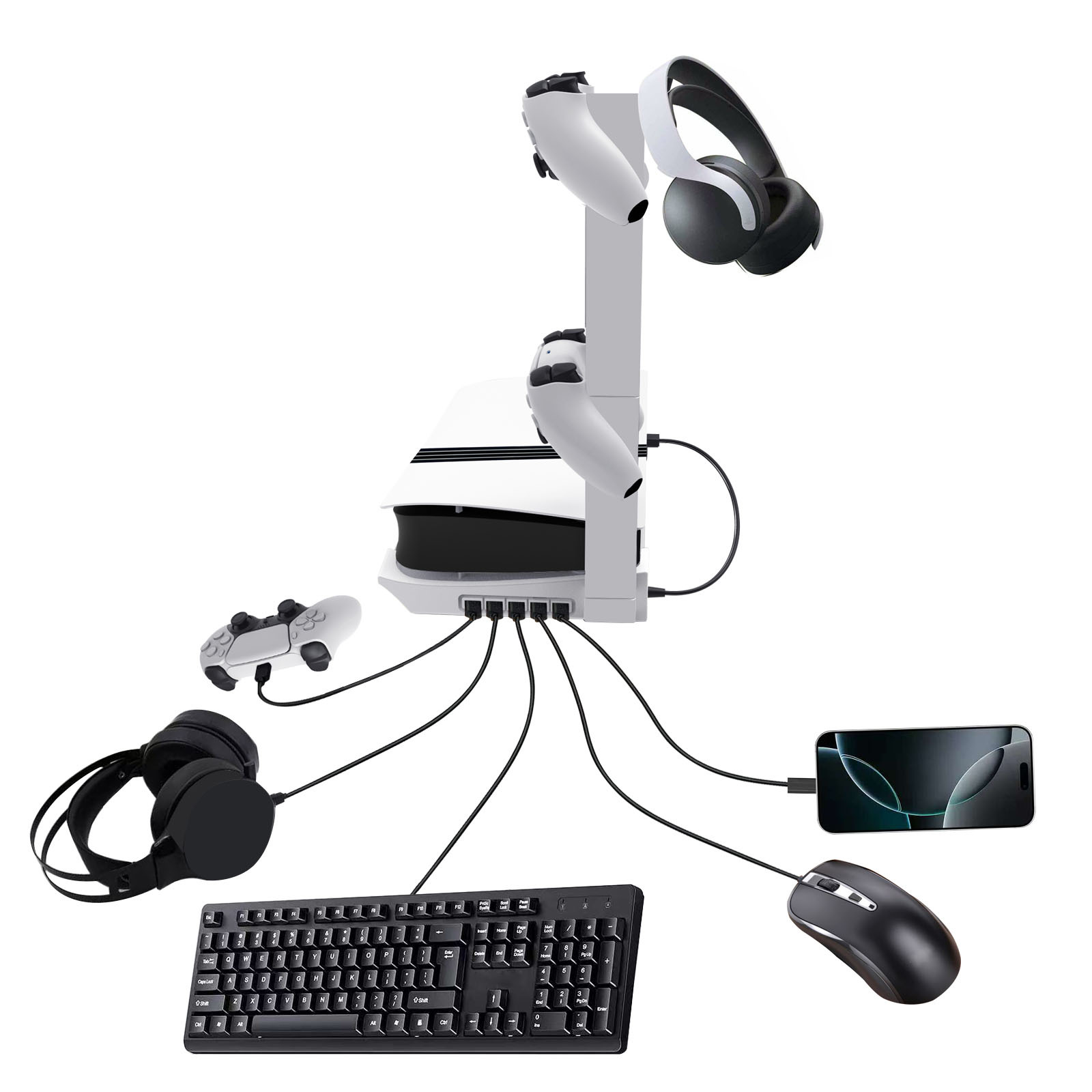 Storage Rack For PS5 pro/PS5 slim Console Portable Flat Stand with 5 USB Ports