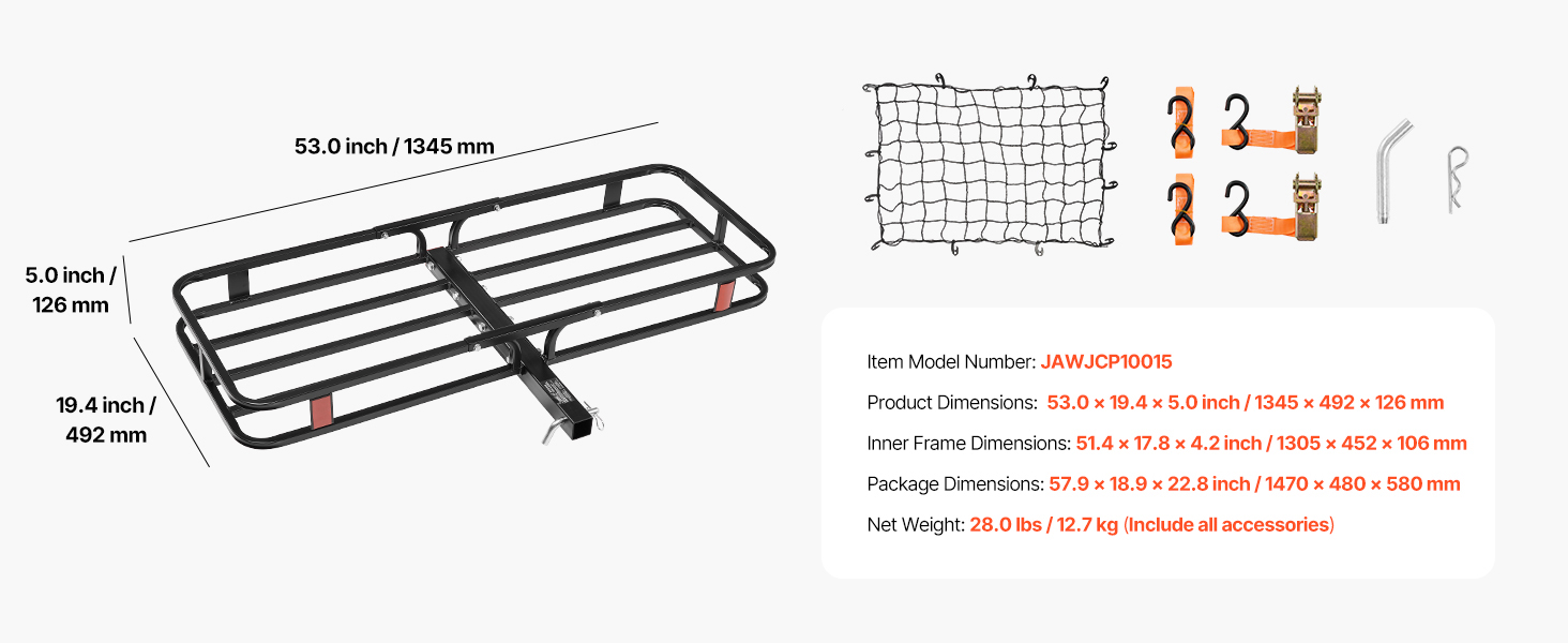 Heavy Duty Steel: This hitch cargo carrier is made of heavy duty steel. Powder coated is rust and corrosion-resistant. Thickened support rods and mesh base effectively carry heavy loads. It is not easy to deform and break.