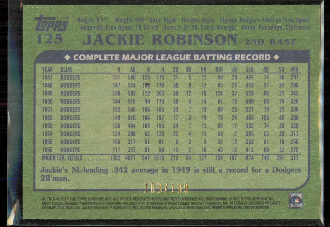 2017 Topps Archives 1982 Design Peach Parallel Jackie Robinson /199 #125