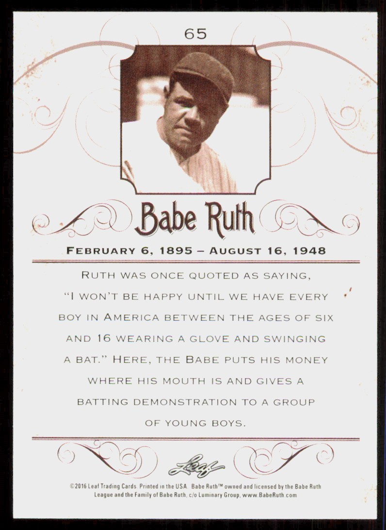 2016 Leaf Babe Ruth Collection Babe Ruth Yankees #65