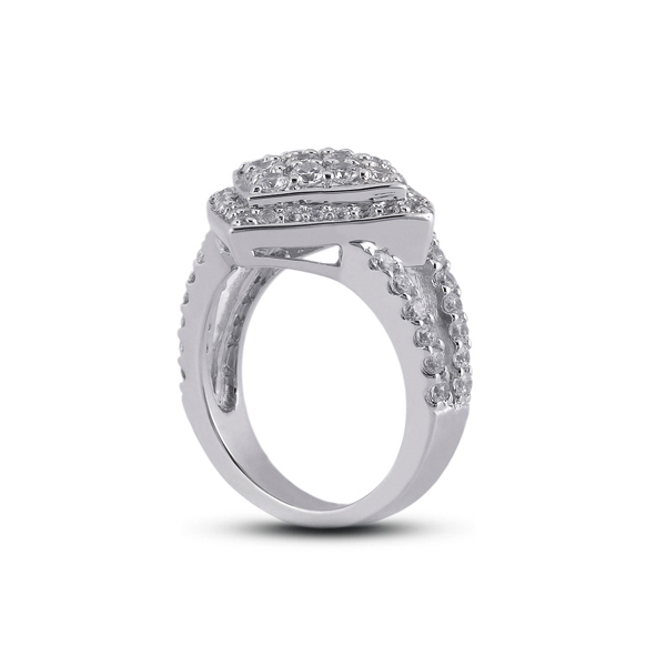 This breathtaking 2.22 carat total platinum split shank halo right hand ring with round brilliant cut diamonds certified by AGI Gemological Laboratories as Natural Earth Mined Diamonds with E color, VS1 clarity and Ideal polish. To accentuate the glow of the diamond on this unique piece our jewelry designer chose pave setting. This item will come with a 3rd party certificate and an estimate appraisal value of $11,585.