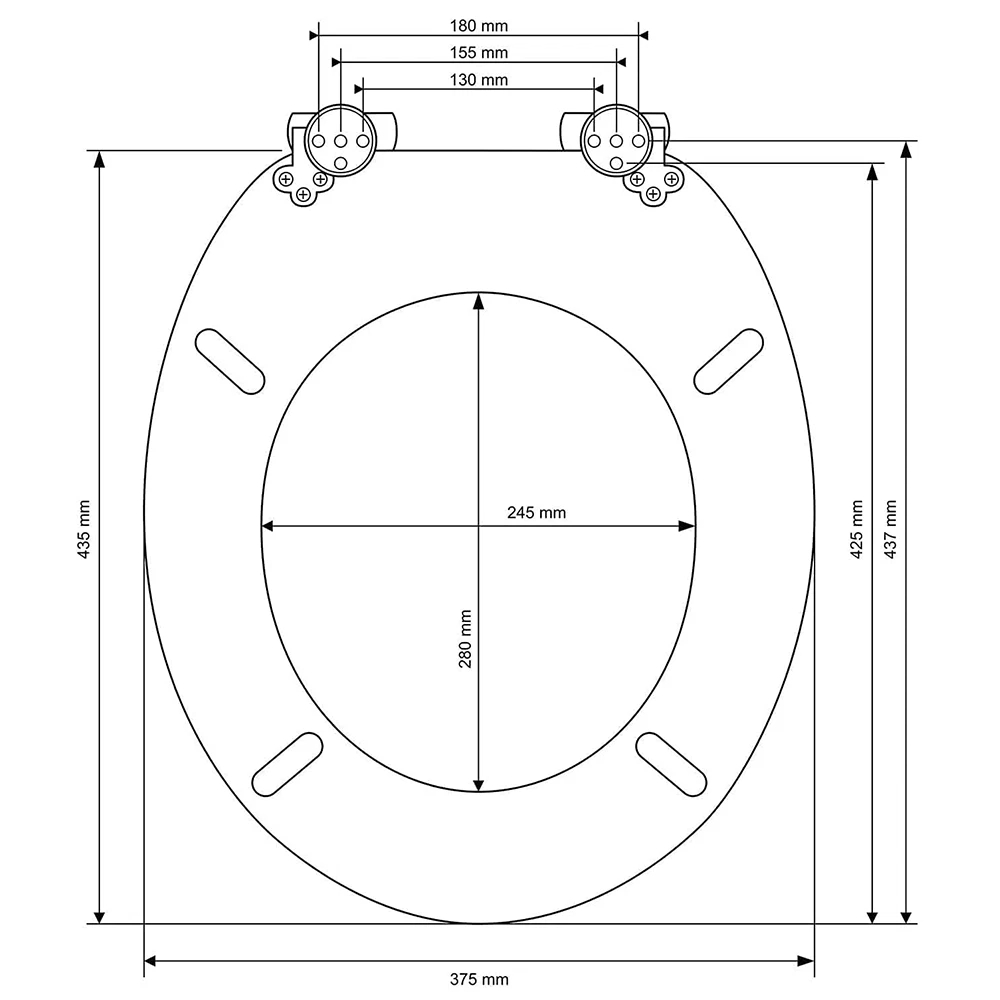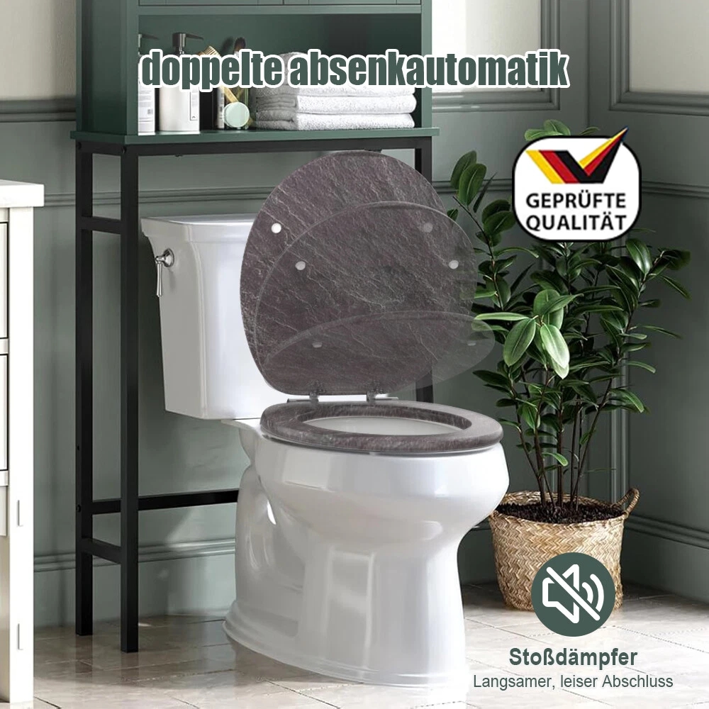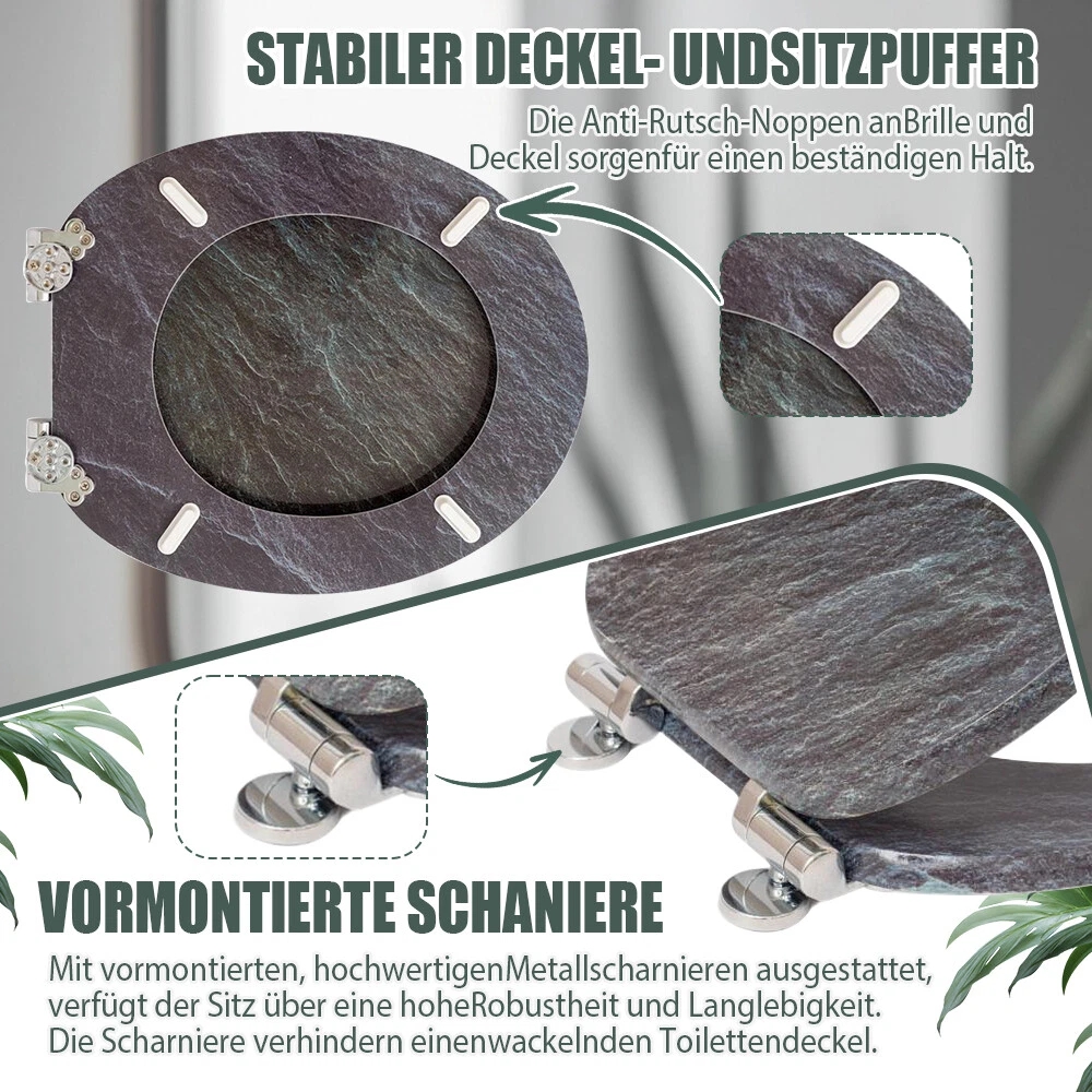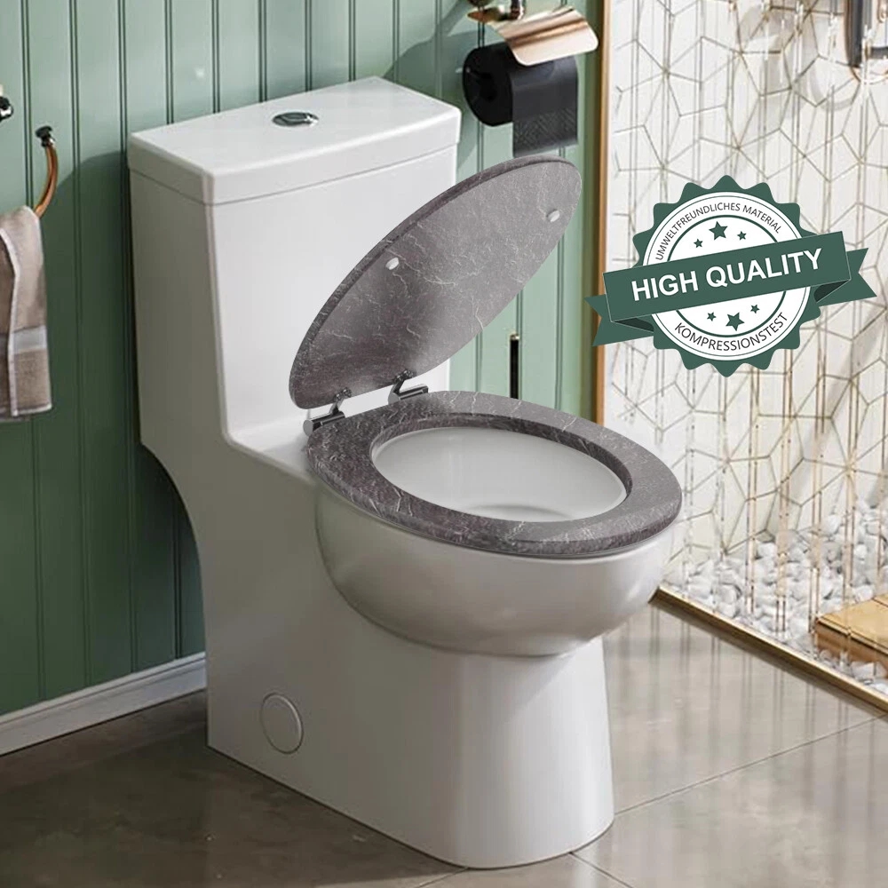 EINFACHE REINIGUNG: Für Ihren Komfort konzipiert, verfügt dieser Toilettensitz über Scharniere, die es ermöglichen, den Sitz leicht für eine gründlichere Reinigung zu entfernen; verwenden Sie dabei milde Reinigungsmittel, um die Oberfläche zu schonen. Künstlerisches Muster: Sorgfältig bemalt oder mit künstlerischen Mustern bedruckt, sei es ein abstrakter Farbkontrast oder eine lebendige figurative Szene, wird er zu einer einzigartigen Gestaltung im Badezimmer, wie ein kleines Kunstwerk, das die Persönlichkeit und den künstlerischen Geschmack des Nutzers zeigt und einen Farbtupfer in das ansonsten eher schlichte Badezimmer bringt. FÜR DEN TÄGLICHEN GEBRAUCH GEBAUT: Dieser geformte MDF-Toilettensitz, mit einer maximalen Belastbarkeit von 190 kg, ist so konzipiert, dass er jahrelang intensiver Nutzung standhält, ohne zu reißen, sich zu verformen, abzublättern oder zu verfärben, selbst in stark frequentierten Haushalten. Kompatibilität: Sie können sich darauf verlassen, dass dieser Toilettensitz für die meisten Toiletten geeignet ist, mit den Maßen 16,93'' x 14,57''. PVC-Folie: 4 Seiten