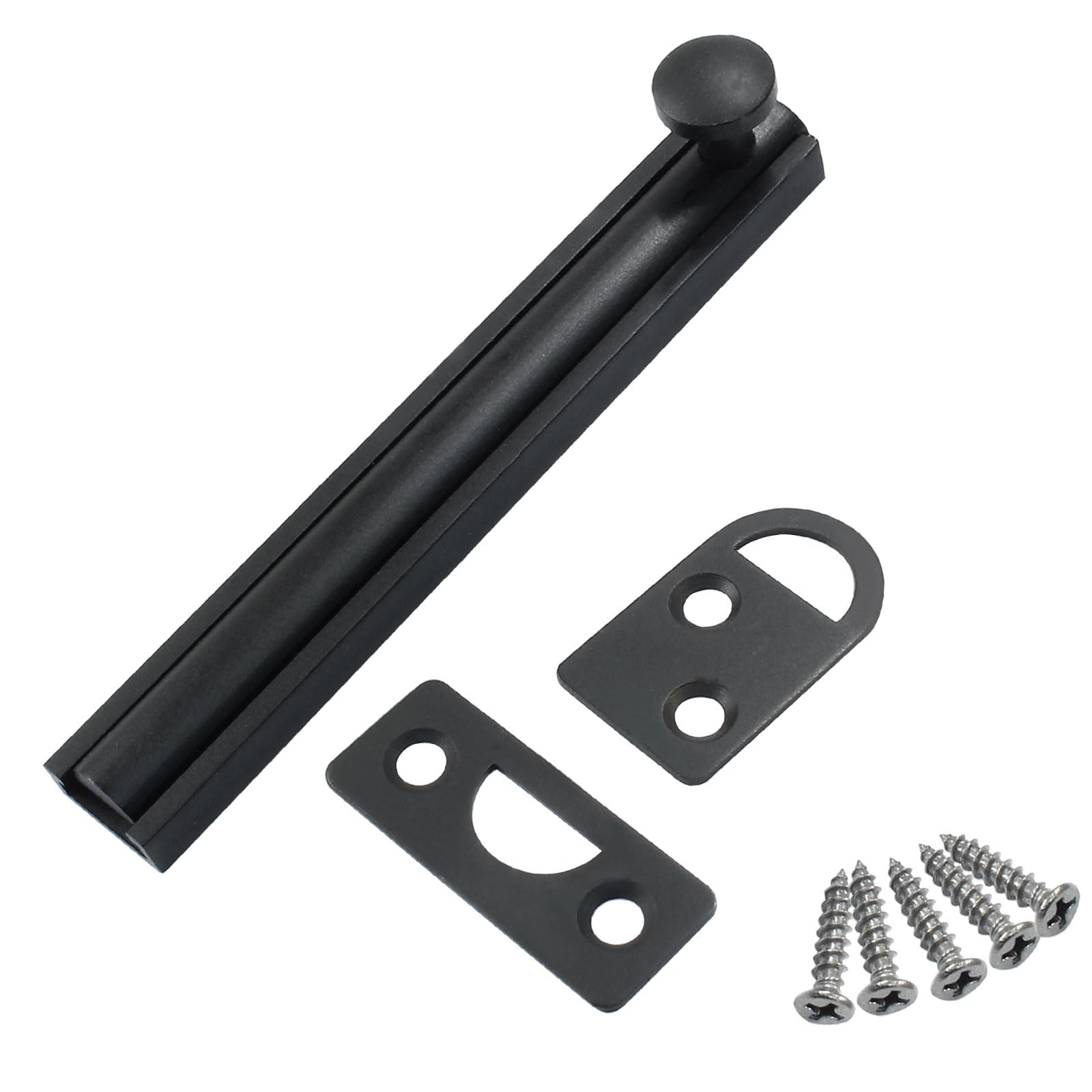 - What Will You Get: 1 x Black Solid Brass Surface Bolt with Screws (including a surface mount keeper and a mortise-keeper), bolt lock size: 102 x 15 mm/4 x 0.59" (L*W), screw length: 16mm/0.63".
