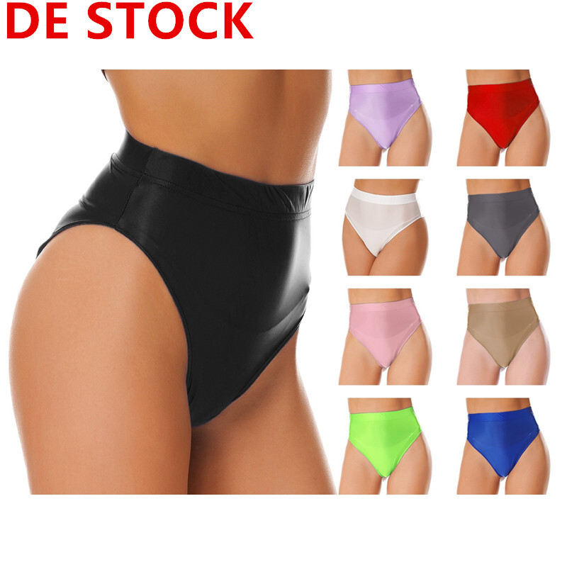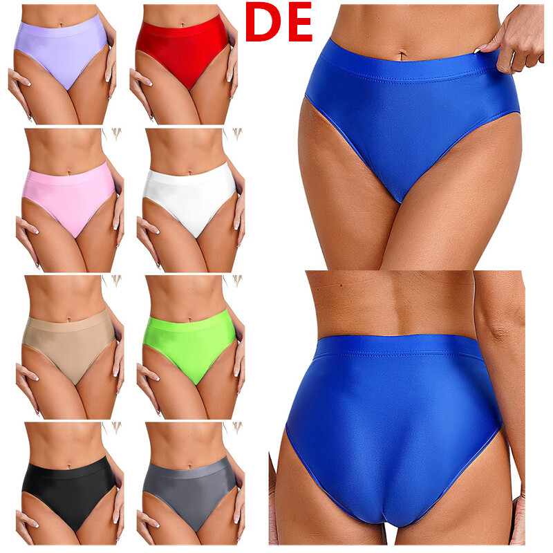 Glänzender Slip für Damen, einfarbig, elastischer Bund für bessere Passform.